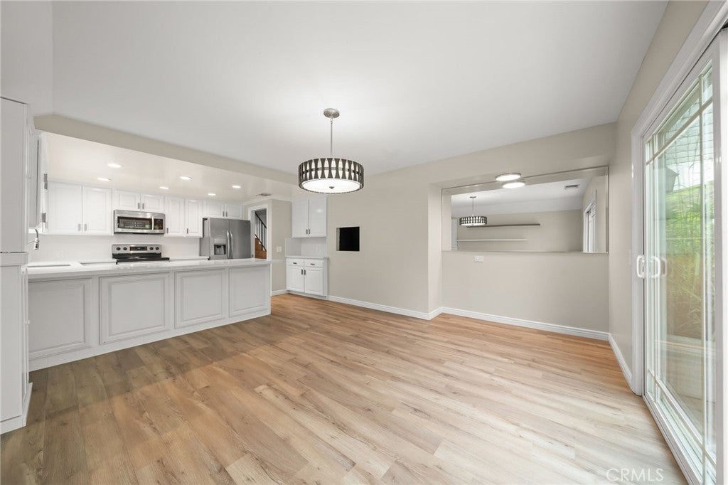 Step into this light-filled 3-bedroom, 3-bath single-family home located in the highly desirable Harbor Pines neighborhood. Offering approximately 1,937 square feet of comfortable living space, this residence blends modern upgrades with everyday convenience. The inviting living room features abundant natural light and a cozy fireplace, creating a warm setting for relaxation or gatherings. The kitchen anchors the home with updated finishes, generous counter space, and a spacious in-kitchen dining area ideal for casual meals or entertaining. All three bathrooms have been tastefully remodeled, providing a fresh, contemporary feel throughout. Direct access from the attached 2-car garage adds ease to daily living, while the backyard patio offers a private outdoor space perfect for dining, lounging, or weekend barbecues. With convenient access to freeways, shopping, and local amenities, this home delivers both comfort and an exceptional location.