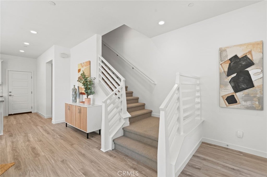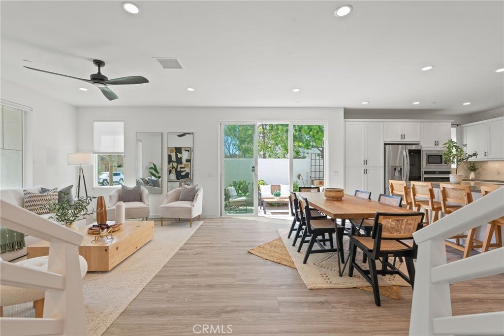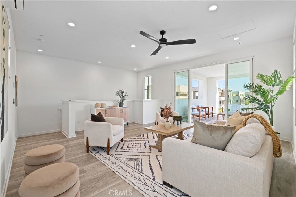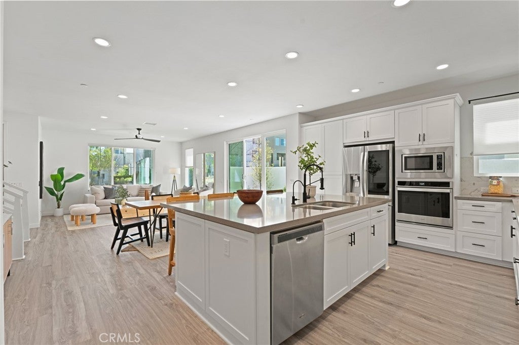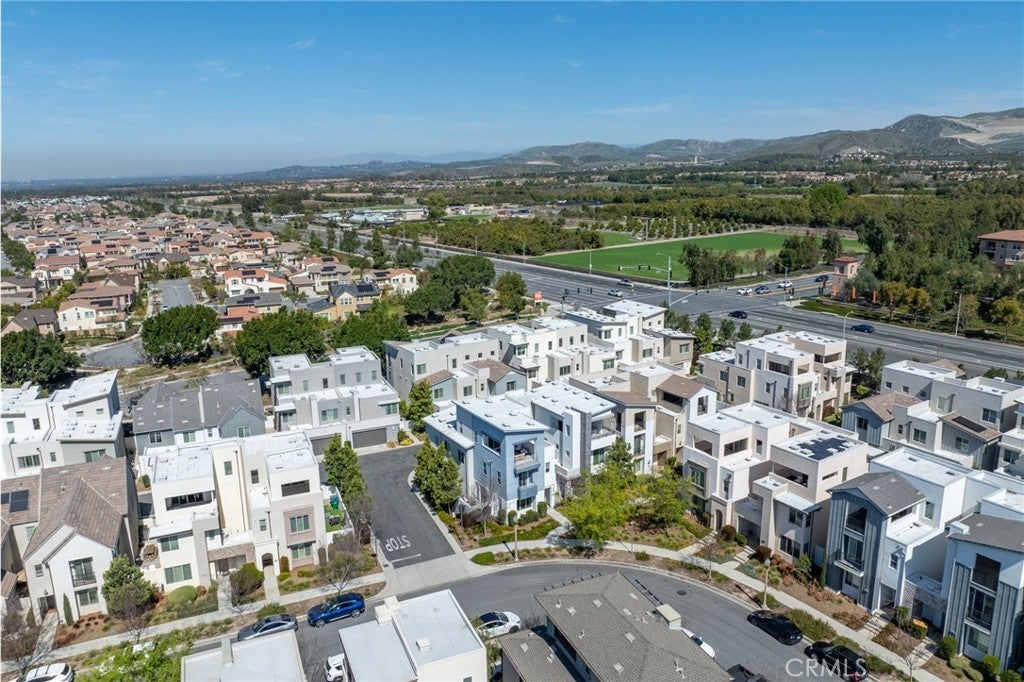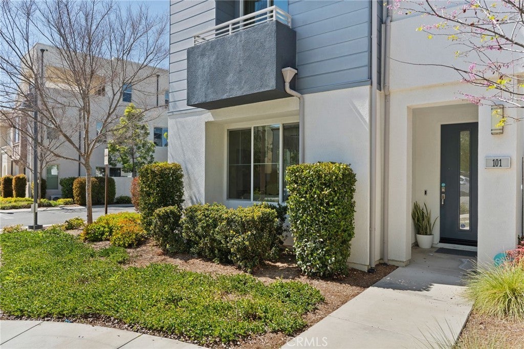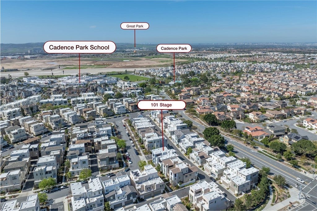 Located in the highly sought-after Cadence Park neighborhood, 101 Stage is a turnkey corner home that seamlessly blends modern luxury, privacy, and smart-home convenience. Equipped with cutting-edge technology, including an LG ThinQ refrigerator, Whirlpool Smart Oven, Leviton lighting system, Nest thermostat, Eero mesh internet, Ring doorbell, and Cove alarm system. This home offers comfort, connectivity, and security. A 220V garage outlet supports EV charging, while a whole-house fan ensures year round comfort. This residence features the largest and most popular Lyric floor plan by Tri Pointe Homes, with all three bedrooms and a den (easily convertible to a 4th bedroom) located on the same level. Although classified as a condo, it offers exceptional privacy with its own foundation and roof, plus an 8-inch air gap between neighboring homes. Abundant natural light fills the home, with no adjacent neighbor blocking the sunshine. The main living area flows effortlessly into the dining space and gourmet kitchen, showcasing a large center island, stainless steel appliances, quartz countertops, and ample cabinetry. Step outside to the sunny side yard featuring water-wise landscaping, a tranquil fountain, and space for outdoor dining, with no neighbor next door. The second floor hosts a spacious primary suite with high ceilings, custom window treatments, a walk-in closet, and an en-suite bath, along with two additional bedrooms, a secondary bath, laundry room, and flexible den/office/4th bedroom option. The third floor is ideal for entertaining, offering a large loft that opens to a covered terrace with expansive views. Additional highlights include a tankless water heater, dual AC systems (including a split system on the third floor), and an oversized two-car garage. Ideally located in the heart of Great Park, residents enjoy access to seven pools, playgrounds, BBQ areas, walking and biking trails, and the 194-acre Sports Park. Shopping, dining, and freeway access are nearby, along with low HOA dues, award-winning Irvine Unified schools, and close proximity to the Cadence Park pool, sports courts, and Cadence K–8 school. This exceptional home offers the perfect blend of modern amenities and vibrant community living, an opportunity not to be missed.