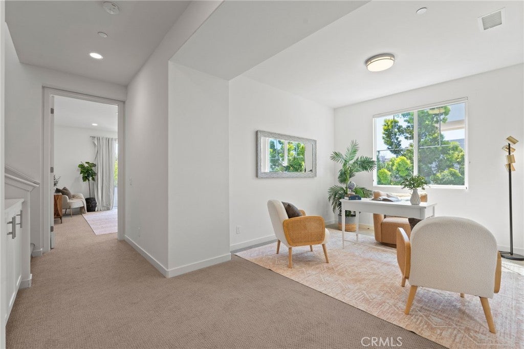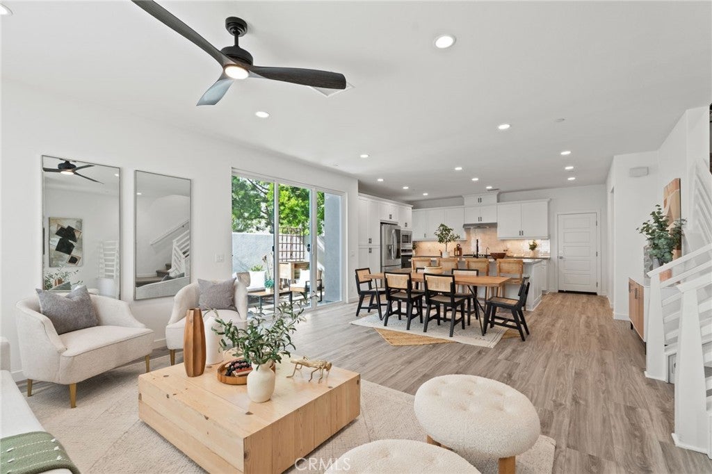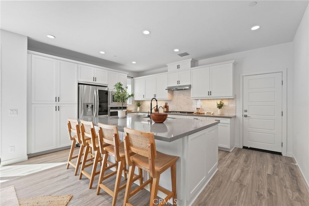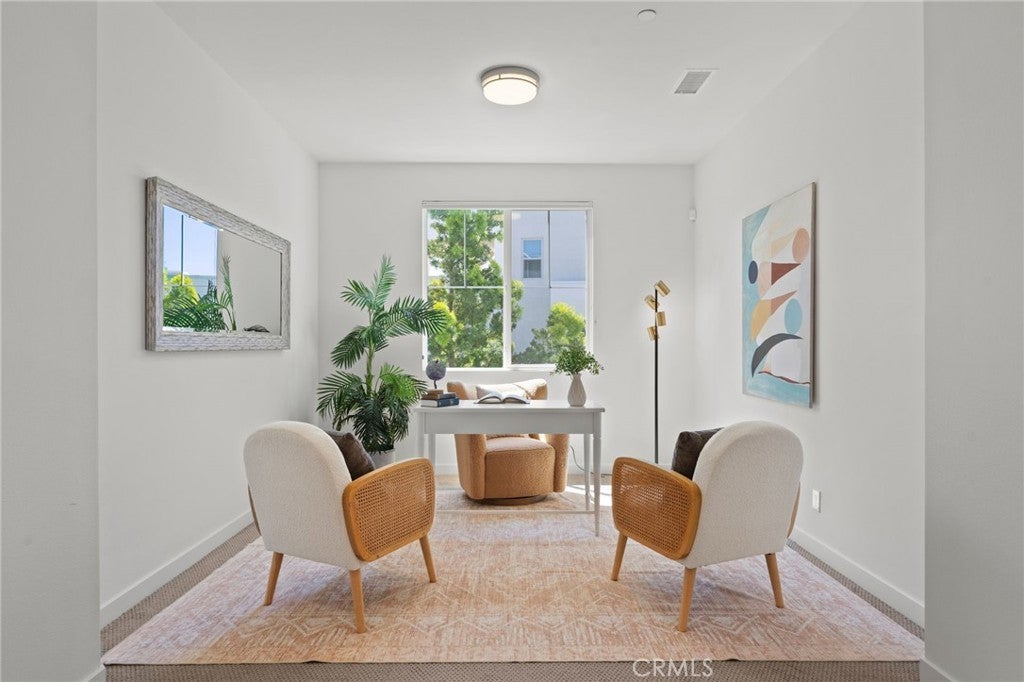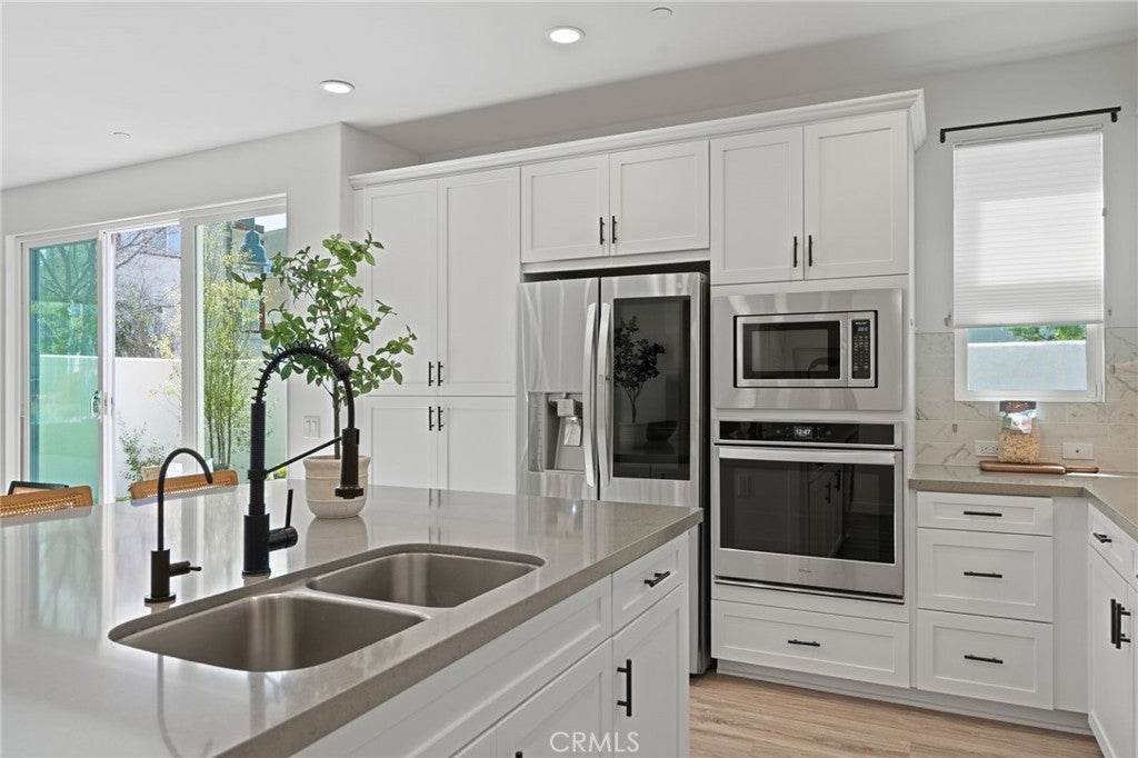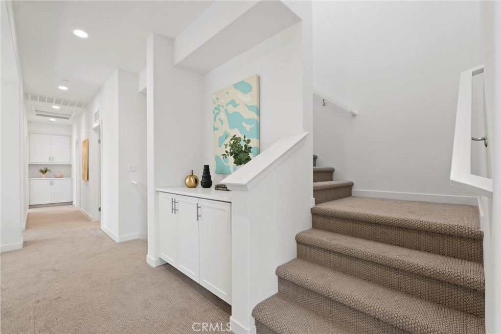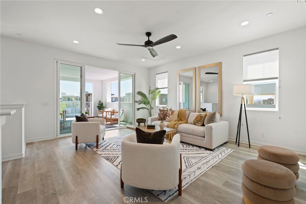 Located in the highly sought-after Cadence Park neighborhood, 101 Stage is a turnkey corner home that seamlessly blends modern luxury, privacy, and smart-home convenience. Equipped with cutting-edge technology, including an LG ThinQ refrigerator, Whirlpool Smart Oven, Leviton lighting system, Nest thermostat, Eero mesh internet, Ring doorbell, and Cove alarm system. This home offers comfort, connectivity, and security. A 220V garage outlet supports EV charging, while a whole-house fan ensures year round comfort. This residence features the largest and most popular Lyric floor plan by Tri Pointe Homes, with all three bedrooms and a den (easily convertible to a 4th bedroom) located on the same level. Although classified as a condo, it offers exceptional privacy with its own foundation and roof, plus an 8-inch air gap between neighboring homes. Abundant natural light fills the home, with no adjacent neighbor blocking the sunshine. The main living area flows effortlessly into the dining space and gourmet kitchen, showcasing a large center island, stainless steel appliances, quartz countertops, and ample cabinetry. Step outside to the sunny side yard featuring water-wise landscaping, a tranquil fountain, and space for outdoor dining, with no neighbor next door. The second floor hosts a spacious primary suite with high ceilings, custom window treatments, a walk-in closet, and an en-suite bath, along with two additional bedrooms, a secondary bath, laundry room, and flexible den/office/4th bedroom option. The third floor is ideal for entertaining, offering a large loft that opens to a covered terrace with expansive views. Additional highlights include a tankless water heater, dual AC systems (including a split system on the third floor), and an oversized two-car garage. Ideally located in the heart of Great Park, residents enjoy access to seven pools, playgrounds, BBQ areas, walking and biking trails, and the 194-acre Sports Park. Shopping, dining, and freeway access are nearby, along with low HOA dues, award-winning Irvine Unified schools, and close proximity to the Cadence Park pool, sports courts, and Cadence K–8 school. This exceptional home offers the perfect blend of modern amenities and vibrant community living, an opportunity not to be missed.