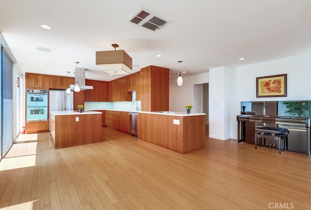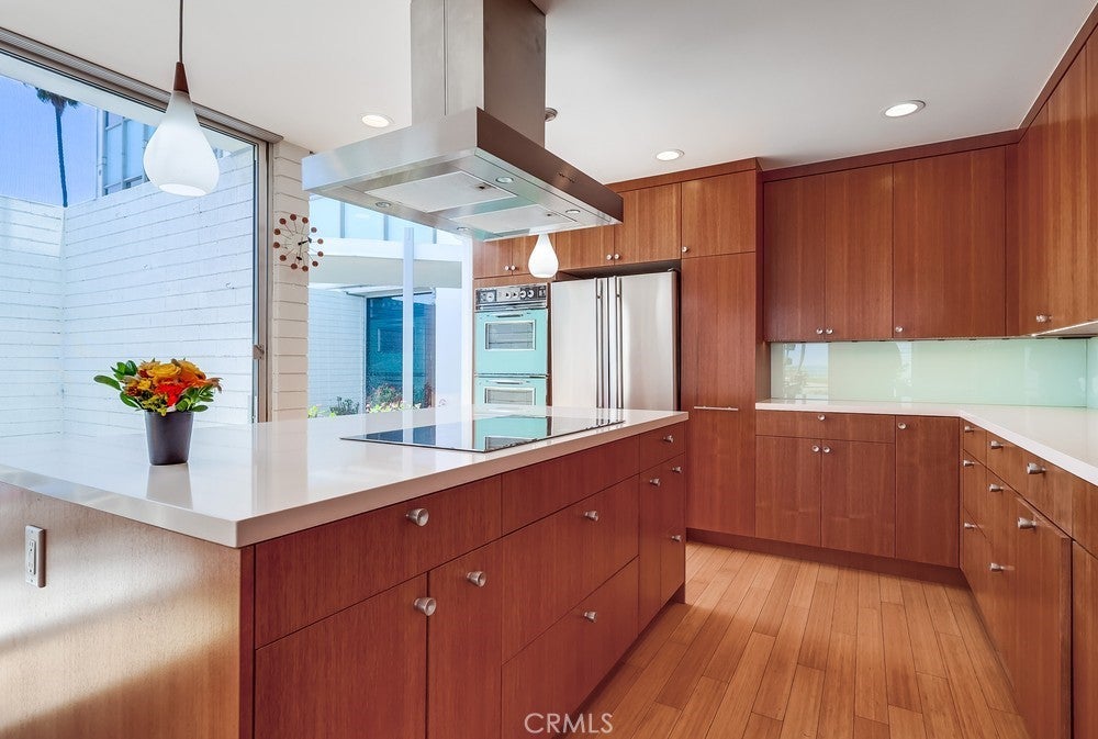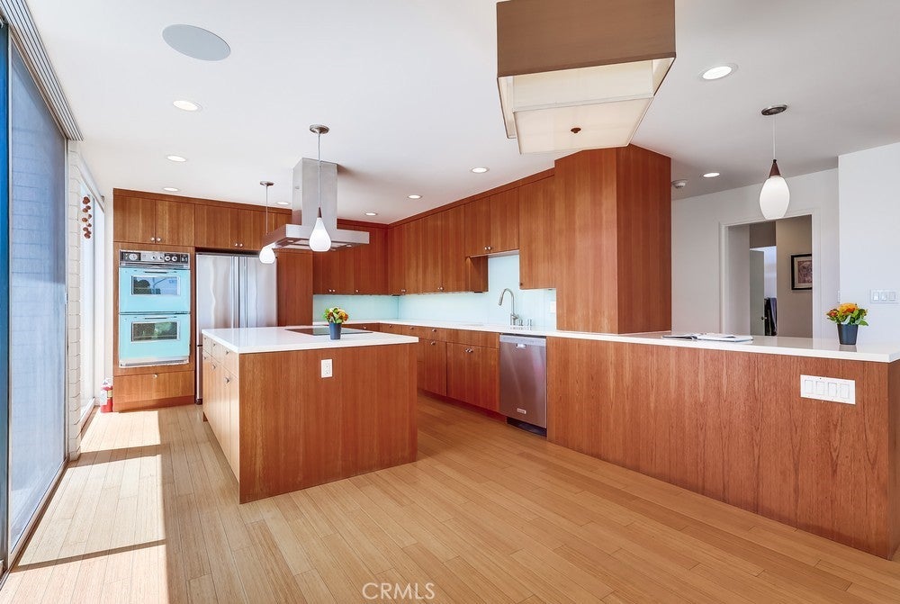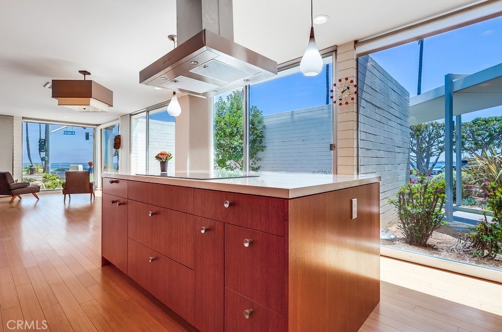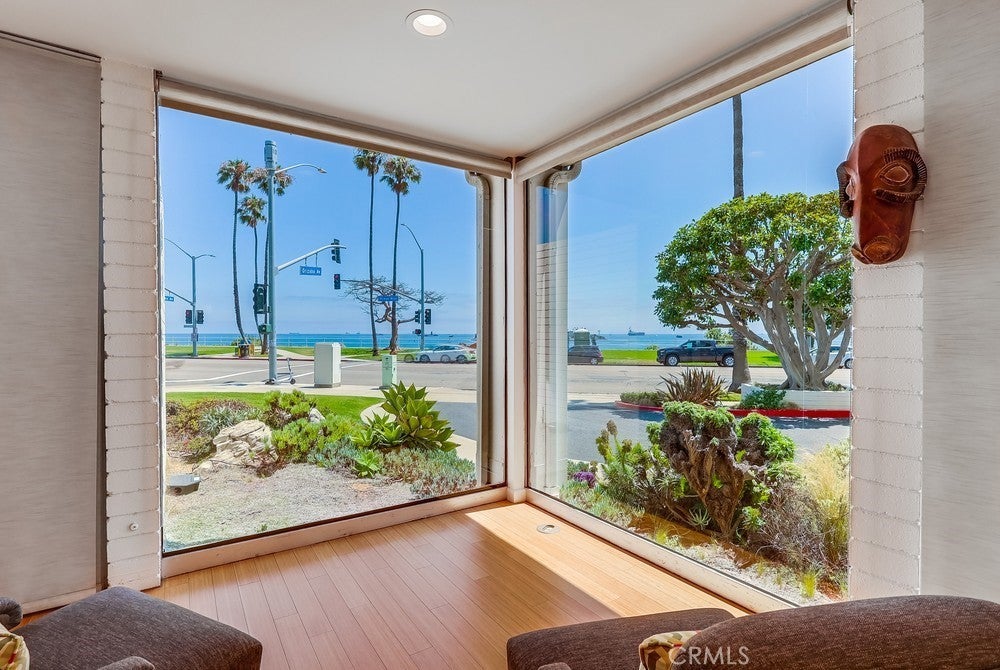 Seller financing available-call for terms! Open concept first floor, 1-level home boasts 1510 sf of living space & spares no expense! Enjoy panoramic ocean, Catalina Island & coastline views from every room of this turnkey highly desirable Bluff Park residence where modern living meets luxury & tranquility! Mid-century modern Ocean Front 2 bedroom, 2 bathroom home is located at the iconic Galaxy Towers designed by Hugh & Don Gibbs. Home is newly remodeled & has everything you could dream of - it's steps away from the Pacific Ocean, offers 3 private patios/courtyards adding 800 sf of outdoor living space to garden, let pets run, meditate, lounge, BBQ & entertain! Spacious living room offers sleek hardwood floors, ceiling-to-floor massive glass windows capturing ocean views & ocean breezes, sliding glass door access to multiple patios & natural light. Stunning chef's kitchen features ocean views & jaw-dropping design featuring induction-electric cooktop, vibrant blue double oven, custom teak wood-toned cabinetry, kitchen island, countertop space & pantry! Home offers spacious bedrooms boasting ocean views, 3 private courtyard/patios & hardwood flooring. Primary bedroom has ocean views while laying in bed from many angles. 1 bathroom features walk-in shower; the other bathroom has a tub/shower combo. Laundry w/washer & dryer conveniently located inside home in cabinets. Gated, subterranean garage parking spot comes w/this unique home! Additional garage parking space available & sold separately for $60,000. The Galaxy is a historically renowned architectural gem with only 4 units per floor & no common interior walls. Galaxy Towers has many amenities including pet friendly, outdoor picnic/BBQ area, elevators, mailroom, on-site manager, new roof, secured access & parking, courtyard, & unobstructed views of the ocean, Catalina Island & Palos Verdes hillside. HOA allows rentals! HOA dues include water, trash, common area maintenance, on-site management, security features & insurance. Home located centrally in an upscale neighborhood within walking distance to coastal adventures, the pier, magnificent restaurants, shopping, museums, Downtown Long Beach, Belmont Shores, Queen Mary, Bluff Park, entertainment & close to freeways. Don't miss this opportunity to make this your coastal retreat!