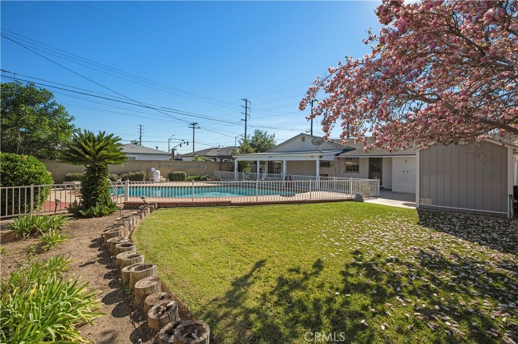 Welcome to this beautiful pride-of-ownership, four-bedroom home situated on an expansive 10,602 square foot lot. Step inside and feel instantly at home in the inviting living room, featuring a cozy fireplace and elegant crown molding. The separate dining room and kitchen overlook the meticulously manicured backyard, perfect for both everyday living and entertaining. The outdoor space is truly an entertainer's delight, featuring a large covered patio, a sparkling pool, lush grassy yard, mature avocado tree and fruit trees, vibrant rose bushes and a generous shed ideal for storage or a charming playhouse. The spacious kitchen offers granite countertops, white shaker cabinetry, and a breakfast nook with backyard views. Additional highlights include a separate laundry room, RV access with room for all your outdoor recreation toys, and a garage with abundant space and extensive built-in cabinetry, providing exceptional storage and organization. Ideally located close to schools, shopping, restaurants, parks, and freeways, this exceptional home offers comfort, space and convenience.