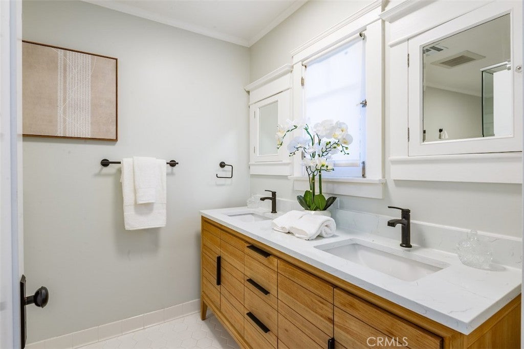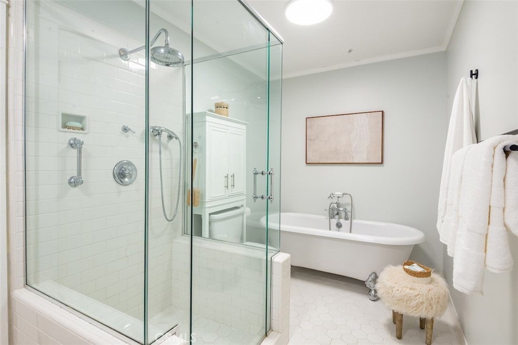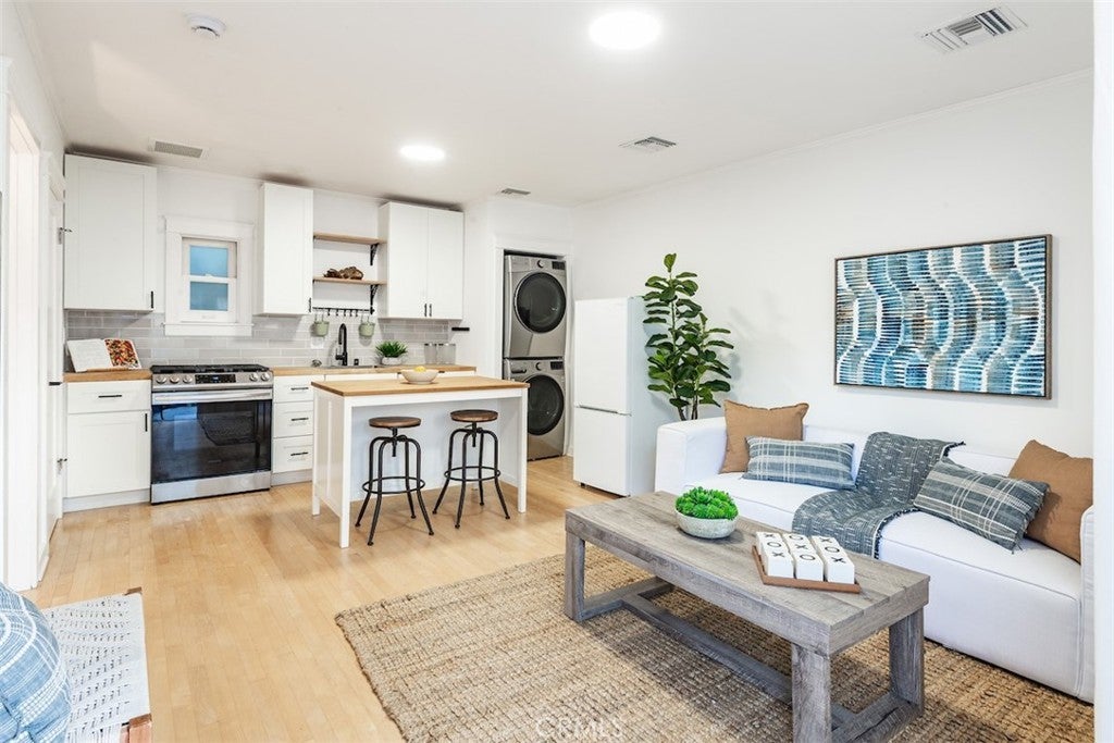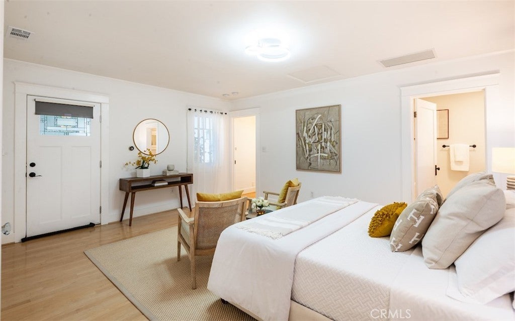 Charming Craftsman-style residence thoughtfully renovated to preserve its classic character while offering modern functionality. The main home features 3 bedrooms and 2.5 bathrooms, complemented by a separate, fully permitted 1-bedroom ADU with kitchen and bath, ideal for guests, extended family, home office, or flexible living space. The updated kitchen offers stainless steel appliances, quality countertops, and direct access to the laundry area. Natural light fills the home through dual-pane windows, highlighting the beautiful wood flooring. Light-filled living room opens seamlessly to the dining area, creating an inviting layout for everyday living and entertaining. The primary suite includes a renovated bathroom with dual vanties, large shower, and soaking tub. The detached ADU includes washer/dryer hookups and its own separate entry. Additional features include copper plumbing, bolted foundation, automated driveway gate, underground utilities, updated sewer line, 200-amp electrical panel, whole-house water filtration system, and an oversized single-car garage with substantial storage space and a golf simulator. Located in a convenient Westside neighborhood near shops, dining, and major commuter routes.