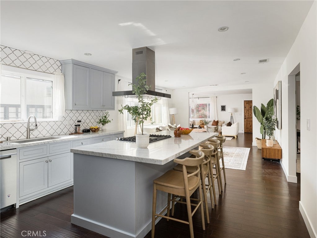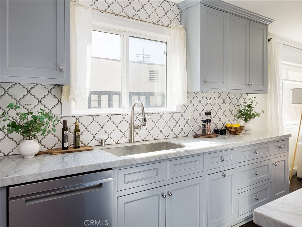 Welcome to 1110 Queen Anne Place, a beautifully reimagined Spanish-inspired residence where timeless character meets the confidence and comfort of modern living. Over a century old, this home proudly preserves its original architectural soul while benefiting from thoughtful upgrades that homeowners value most, from structural reinforcement to energy efficiency and gated security. Set moments from Hancock Park and Larchmont Village, the property is introduced by a lush, low-maintenance front courtyard with dual trellis entry, offering an inviting prelude to the warmth and elegance within. Inside, graceful archways, custom built-ins, and period-appropriate details frame a bright, open floor plan anchored by two distinct living spaces, ideal for both everyday living and entertaining. The updated kitchen blends style and function, featuring a generous Carrara marble breakfast bar, custom cabinetry, an arabesque tile backsplash, and high-end stainless steel appliances. The generous dining space provides ample room to entertain for the holidays or a fun game night. The primary suite serves as a tranquil retreat, complete with a custom walk-in closet, built-in marble desk, and French doors opening to the rear yard. The spa-inspired bathroom features designer tile and a Kohler soaking tub with temperature controls, creating a true at-home sanctuary. A standout feature of the property is the detached two-car garage with a permitted studio above, previously used as a recording space and complete with a half bath. This flexible and private space offers exceptional versatility and is ideal for a creative studio, home office, guest suite, or potential future ADU conversion, buyer to verify. Beyond aesthetics, the home offers meaningful peace of mind with the structure bolted to the foundation, a motorized electric driveway gate, and fully paid-off solar panels that provide long-term energy savings. Drought-tolerant landscaping further enhances ease of ownership and low maintenance living. This is a rare opportunity to own a 100-year-old home that honors its historic charm while delivering the modern conveniences and security expected today, all in a prime central location close to the shopping, dining, and culture of Hancock Park, Larchmont Village, Mid-City, and surrounding neighborhoods.