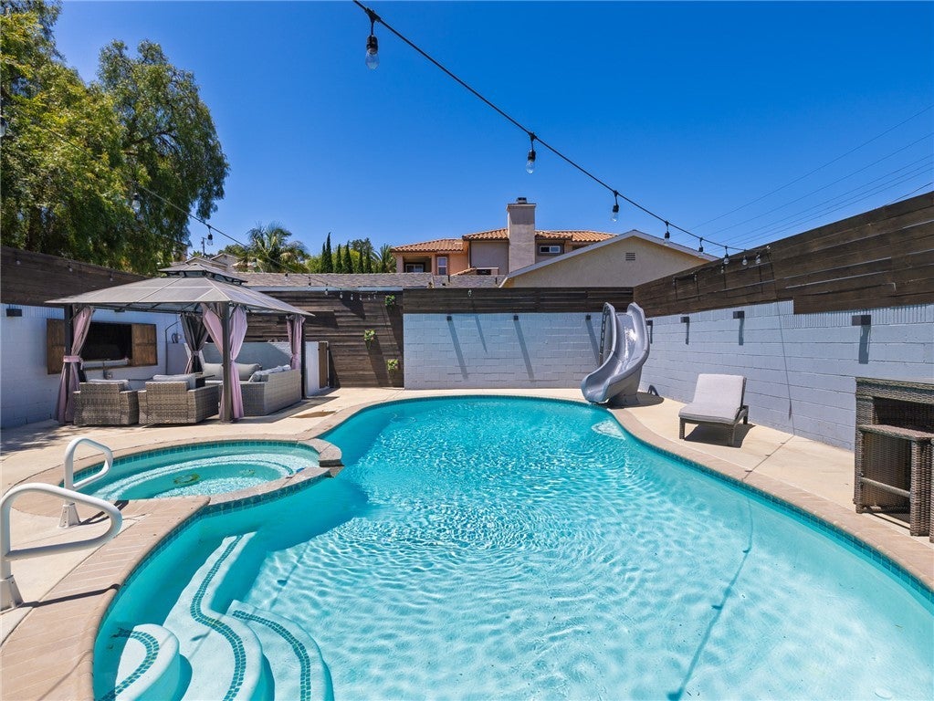 Welcome to your dream home, perched on a quiet cul-de-sac with breathtaking views of the LA Harbor, Downtown Los Angeles, and the San Gabriel Mountains. This stately 5-bedroom, 3-bathroom residence has been thoughtfully updated and is perfectly designed for both entertaining and comfortable everyday living. The home’s ornate façade makes a striking first impression, while the newly installed turf lawn offers a clean, low-maintenance exterior. Step inside to a beautifully refreshed interior featuring new flooring and fresh paint throughout. At the heart of the home is an expansive chef’s kitchen with a massive island and built-in cooktop, seamlessly connected to the living room—perfect for gatherings of any size. Enjoy a variety of spacious living areas, including a formal dining room that comfortably seats ten, a separate formal living room, and a cozy family room. Upstairs, the primary suite serves as a luxurious retreat with a newly renovated, spa-inspired bathroom boasting a soaking tub, separate shower, and walk-in closet. One of the additional upstairs bedrooms has been transformed into a custom-designed dream dressing room, which can easily be converted back. Two more bedrooms are located upstairs, with a fifth bedroom downstairs adjacent to a full bathroom—ideal for guests or a home office. The backyard is a private, resort-style oasis featuring a heated pool and hot tub, outdoor lounge with a covered TV area, built-in BBQ island with refrigerator, and solar panels to help offset energy costs. This home offers privacy, personality, and modern comfort in a location surrounded by parks, hiking trails, natural beauty and easy access to freeways and dining. Far from cookie-cutter, this is your chance to own a truly one-of-a-kind residence with character and charm.