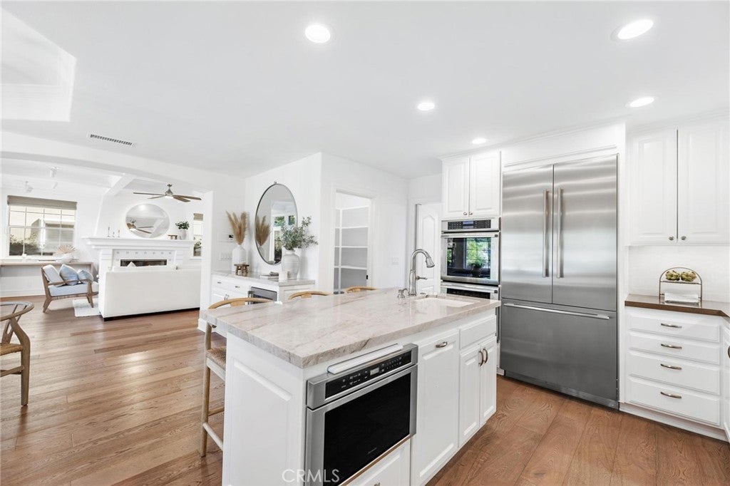 *Offer Deadline is Wednesday (March 4th) at 5pm* A welcoming blend of scale, light, and thoughtful design, 1623 8th Street offers refined South Bay living on a 7,499 sqft lot with exceptional functionality and flow. Entering through the front door, a double-height foyer with skylights welcomes you into this light-filled and thoughtfully designed home. To the left of the entry, a formal sitting room bathed in natural light features a dual-sided fireplace that seamlessly connects to the formal dining room. To the right, a versatile office which also serves as a bedroom, offers an ensuite bath and generous closet space. A conveniently located powder room and additional storage enhance the functionality of the main level. At the rear of the home, the expansive family room is anchored by a statement fireplace paired with coffered ceilings and custom built-in cabinetry. French doors open to the backyard, creating seamless indoor-outdoor living. The family room flows directly into a charming breakfast nook complemented by a dry bar. The open-concept kitchen features a large center island with breakfast bar seating and Thermador stainless steel appliances, along with a spacious walk-in pantry. The kitchen also connects directly to the formal dining room, providing exceptional flow throughout the home. Direct access from the double car garage and a main-level laundry room with built-in cabinetry add further convenience. Ascending upstairs, you’ll find the expansive primary suite, highlighted by vaulted ceilings and a fireplace. The ensuite bath features dual vanities, a large soaking tub, a glass-enclosed shower, and a private water closet. The suite also includes an oversized walk-in closet with custom built-ins and abundant storage. The three secondary bedrooms on the upper level are equally well-appointed, all offering vaulted ceilings and generous closet space. An additional full bath includes dual vanities, a shower-tub combo, and a skylight that fills the space with natural light. Outside, the backyard unfolds as a private extension of the home offering a generous patio and a large grassy lawn. Recently refreshed, the home features a fully repainted interior, all-new carpeting, updated landscaping, a new tankless water heater, and recently installed home security system. 8th Street Public Park is also just a block away.