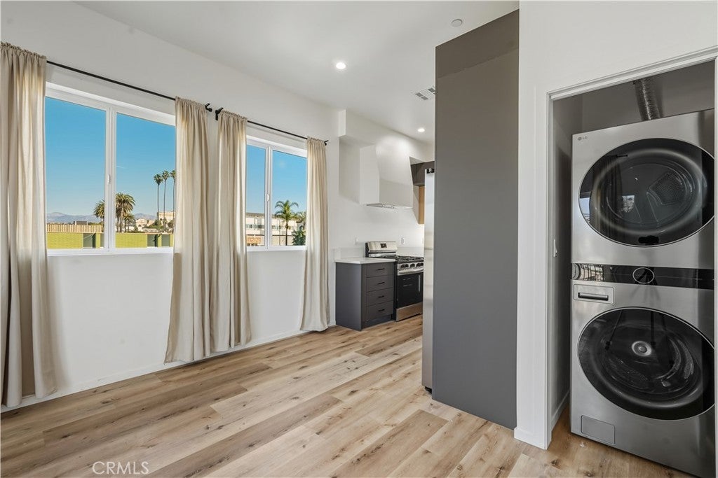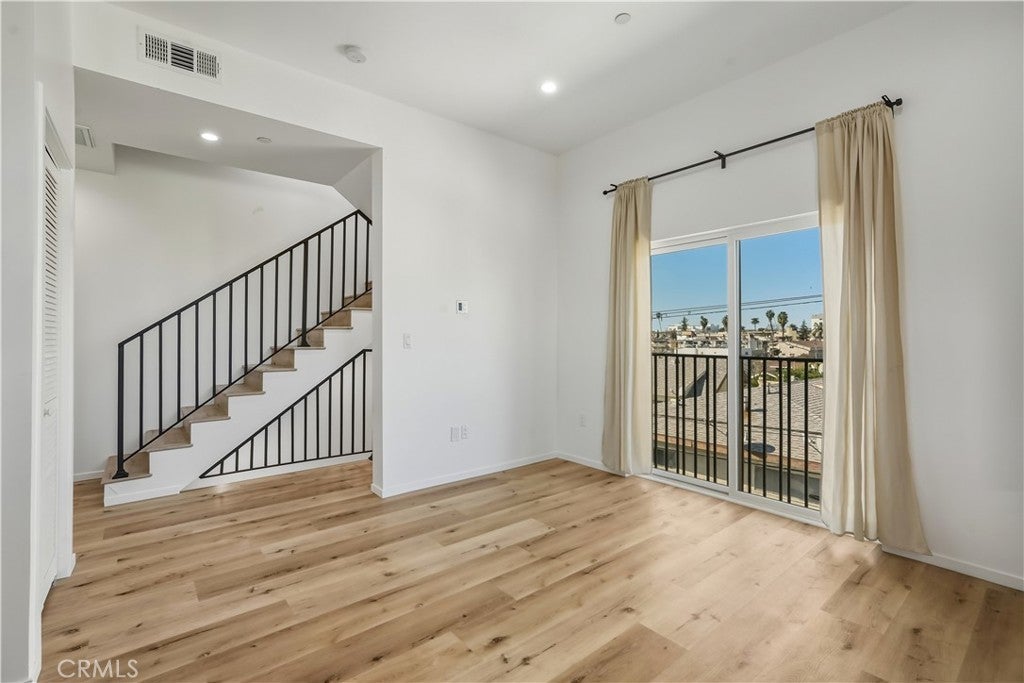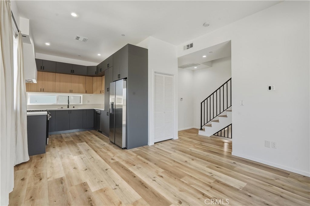 SKYLINE VIEWS IN HI-FI! Welcome to this ambitious 3-bed, 2-bath townhome representing the quintessential modern residence. This tri-level L.A. masterpiece boasts 1520 sq. ft. of architectural excellence with a full-width roof deck capturing miles of twinkling city lights. Designed with an open-plan layout, the home features khaki-hued laminate flooring, elevated ceilings with integrated lighting, and a first-class epicurean kitchen with chic matte cabinetry. With a secluded primary suite and versatile guest rooms for a home office, this property is meticulously crafted for sophisticated living. Just 10 minutes to Dodger Stadium and L.A. Live, and a short drive to Silverlake and The Grove, this is the perfect blend of style and city access.
