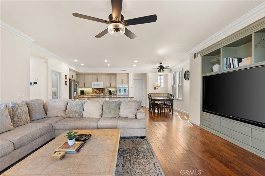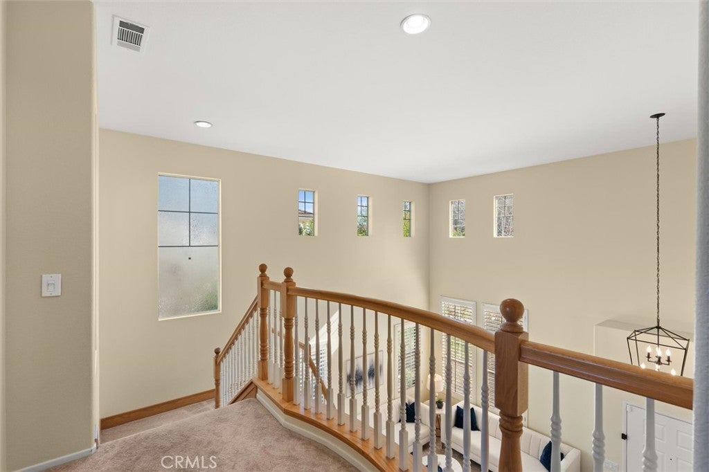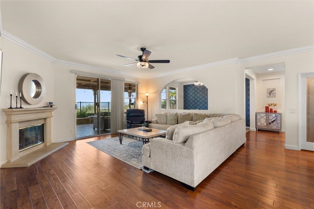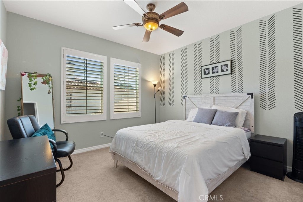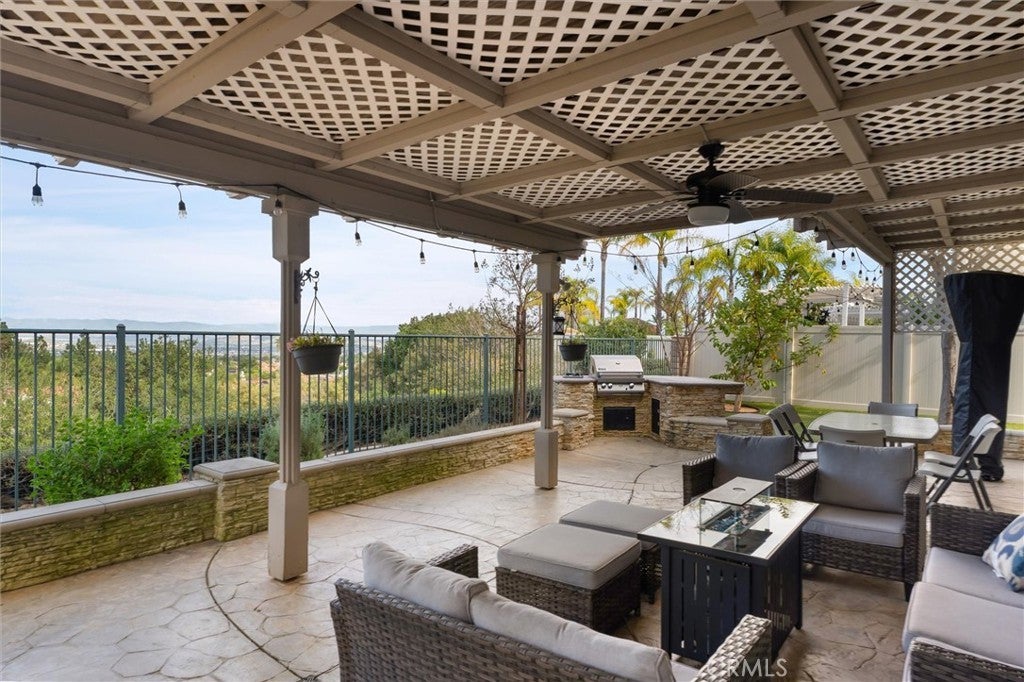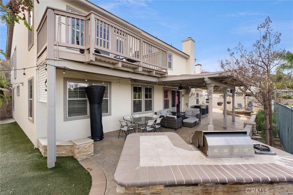 Stunning VIEWS and SOLAR in one exceptional home! Located on a single-loaded street with no neighbors across, this residence blends privacy, energy efficiency, and flexible living space - making it an ideal family home. Step inside to soaring 9-foot ceilings and a light-filled, open living room with plantation shutters. The downstairs features a spacious kitchen with large center island, walk-in pantry, and upgraded cabinetry, along with both formal and casual dining areas. A main-level bedroom and full bathroom offer an excellent multigenerational living option or private guest suite, while the converted extra third garage space adds valuable bonus space, ideal for a home office, playroom or gym. Upstairs, unwind in the luxurious primary suite complete with a private balcony overlooking panoramic views, and en-suite bathroom with dual vanities, a soaking tub, walk-in shower, and a generous walk-in closet. Three additional bedrooms—each with walk-in closets—plus a full bath with dual sinks, built-in desk, and an upstairs laundry room complete the second level. The backyard is designed for low-maintenance outdoor living and entertaining, featuring stamped concrete, artificial turf, and a built-in BBQ with sink—all framed by breathtaking city and hillside views. Enjoy fresh fruit from your own trees, including guava, mulberry, apricot and more. Energy-saving upgrades include solar panels, a new HVAC system, a whole house fan, and built-in EV charger, keeping monthly utility costs low. Located walking distance to community parks and pickleball courts, residents enjoy easy access to the 91, 15, and 71 freeways. With the perfect blend of comfort, functionality, and breathtaking views, this move-in-ready home is waiting for you to come and take a tour.