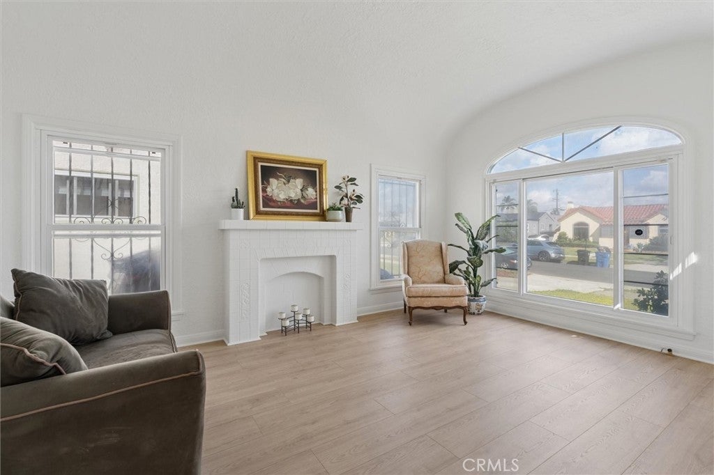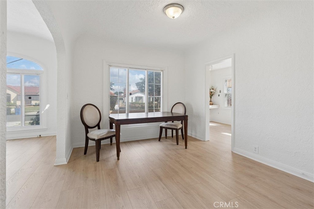 Discover this charming Manchester Square home, thoughtfully updated and move-in ready. Fresh interior paint and brand-new wood-look laminate flooring create a bright, modern ambiance throughout. The light-filled living room features expansive windows and flows seamlessly into the dining area, offering an inviting space for both everyday living and entertaining. The kitchen is well-appointed with generous cabinetry, ample counter space, and a convenient adjoining laundry area. All three bedrooms are comfortably sized, each filled with natural light and designed with a clean, contemporary feel. Step outside to a spacious backyard—perfect for relaxing or hosting gatherings. A long driveway leads to a detached two-car garage, offering excellent potential for conversion into an ADU. Situated on a generously sized lot, this home provides easy access to local shopping, SoFi Stadium, Intuit Dome, and the Forum—making it a wonderful opportunity in a highly desirable location.