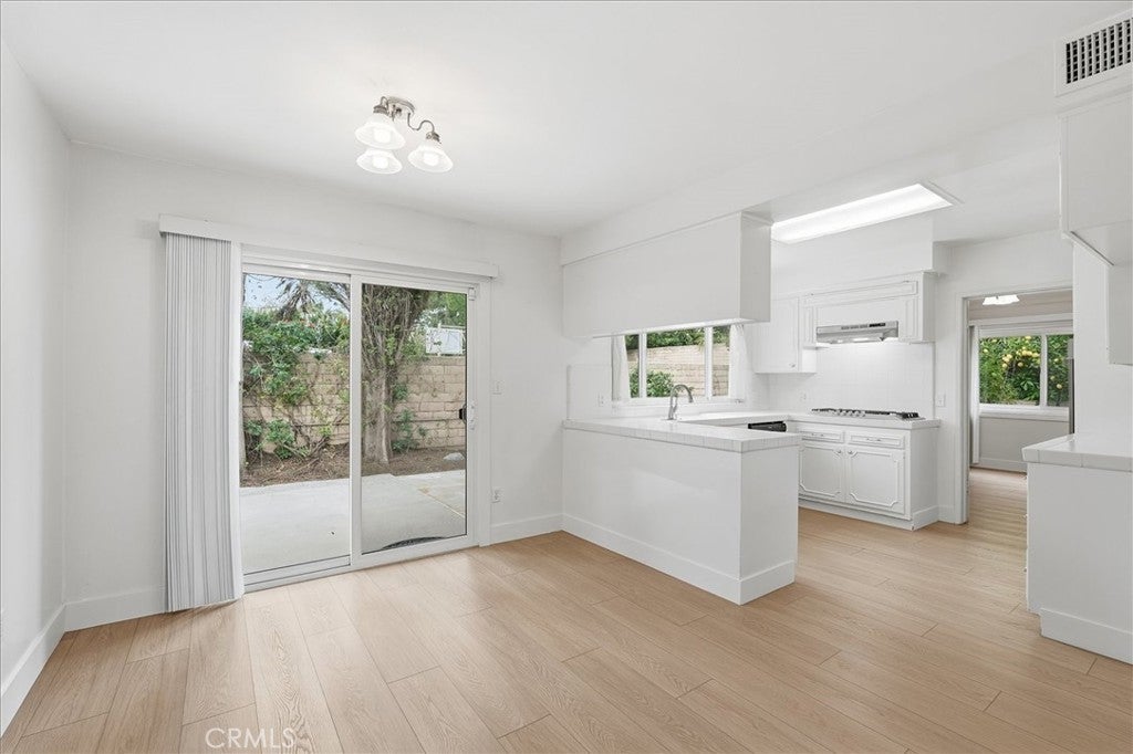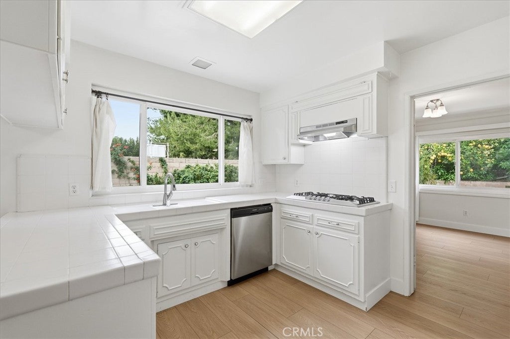 Beautiful single level home in a desirable Chatsworth cul-de-sac, offering a thoughtful layout and inviting charm. A large entryway welcomes you into the foyer and leads into a spacious living room featuring a cozy fireplace, wet bar, and two large skylights that allow for natural light throughout the day. Light-colored luxury vinyl flooring and neutral walls create a bright and welcoming atmosphere.The kitchen offers white tile countertops and a breakfast/eating area as well as an additional dining space. Updates completed in 2024 include brand-new kitchen appliances - oven, stove, range hood, and dishwasher, along with installing vinyl plank flooring, complete interior repaint, and a new heating and air conditioning unit for year-round comfort. Adjacent to the kitchen is an ideally located half bathroom, laundry room with newer washer and dryer, and direct access to the two-car garage for everyday convenience. The thoughtful floorplan balances spaciousness with comfort, with the main living areas separated from the bedrooms for added privacy. The primary bedroom includes a walk-in closet with built-in organizer and an ensuite remodeled bathroom with plenty of countertop area and updated cabinetry. Down the cabinet-lined hallway are two generously sized bedrooms, one office/bedroom, and a full hallway bathroom. Outside, the backyard provides ample space to enjoy, featuring grassy areas, a hardscape side yard with storage shed, and a central patio area ideal for outdoor entertaining and relaxation. The generous front yard adds to the home’s sense of openness and curb appeal and there is a long driveway for additional parking. Situated on a peaceful cul-de-sac, nearby elementary & middle schools, shopping, this home combines modern updates, comfort, and a highly desirable location.