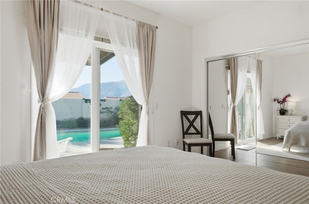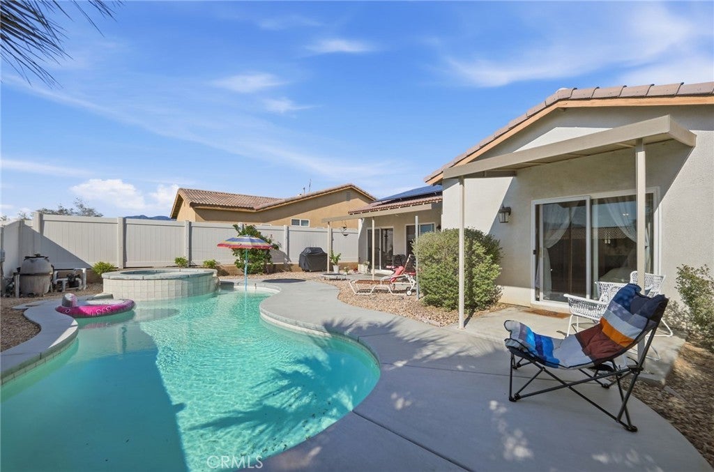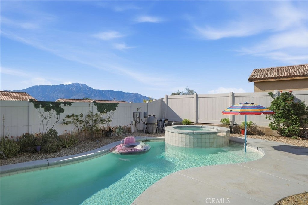 Price Adjustment - Seller will consider all offers. Rare Assumable Loan Opportunity — $142,000 at 3.75%! Take advantage of below-market financing with this move-in-ready Desert Hot Springs home located in a peaceful, Mountain-View gated community. Situated on a semi–cul-de-sac and outside the sandy wind corridor, the neighborhood features underground utilities throughout—no electrical poles and reduced fire risk. Set on a flat, private lot with 7-foot backyard fencing, this 3-bedroom, 2-bath home offers a resort-style outdoor retreat with a pristine heated saltwater pool and spa, shaded patio for entertaining, and ample space for family gatherings. Inside, the home is bright and thoughtfully upgraded. The spacious living room features recessed lighting and a cozy gas fireplace. The beautifully remodeled kitchen includes a large granite center island and newer appliances—perfect for both casual meals and hosting. All three bedrooms offer generous closet space, blackout blinds, and durable Republic flooring installed just three years ago. Both bathrooms have been tastefully remodeled within the past year. The large primary suite opens through sliding doors to a private sitting area overlooking the backyard and pool, and includes a newly remodeled EnSuite bathroom. Additional features include: • Whole-home LifeSource water softening system • Water heater replaced 2 years ago • Solar panels to reduce energy costs (approx. $101/month) This home offers comfort, efficiency, privacy, and a rare financing advantage—an exceptional opportunity in today’s market.