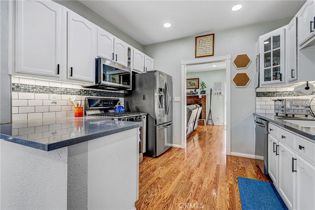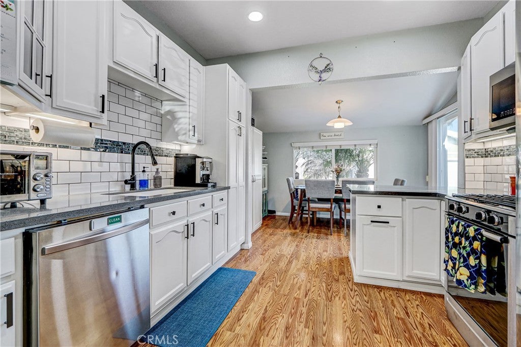"Home Sweet Home", this home is beautifully upgraded and totally turnkey. 3 bedroom ( 2 of them are huge). Eat-in kitchen with Quartz counters, bright white cabinets and stainless appliances, the kitchen opens up to a deck - perfect for the barbque. 2 beautifully appointed bathooms, Seller's added the 2nd bath with permits in 2023. Living room with cozy fireplace. Huge flat lot. The backyard is an entertainer's delight with plenty of room for the kids to play and slab for the outdoor funiture and a firepit. You are greeted with a beautifully designed and low maintenance front yard. 2 car detached garage with tons of storage and washer and dryer. Long driveway for extra parking. The roof is 4 years old and the Solar Panels are owner owned.