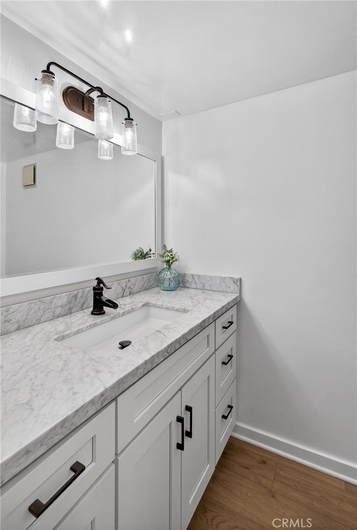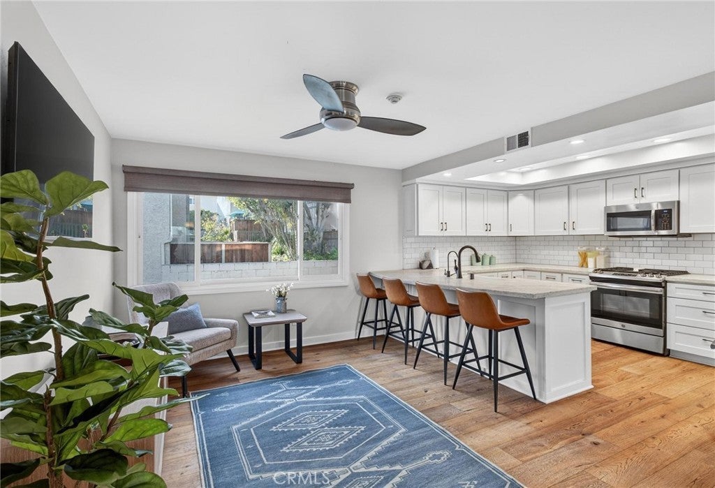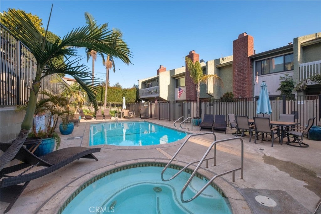 Tucked away in the sought-after Golden Hills neighborhood of Redondo Beach, just minutes from the sand, 1409 Goodman Ave offers a stylish blend of coastal convenience and functional design. This remodeled end-unit townhome features 3 bedrooms, 2.5 bathrooms, and 1,801 square feet of updated living space—PLUS a bonus area downstairs—designed for everyday comfort and effortless entertaining. The main level opens to a bright, open-concept living and dining area that connects seamlessly to an oversized private patio—perfect for al fresco meals or laid-back gatherings. The spacious kitchen balances style and functionality, with ample cabinetry, generous counter space, and a natural flow into the living area. Upstairs, all three bedrooms are located on the same level, including a well-appointed primary suite and two remodeled bathrooms with tasteful finishes. Downstairs, a flexible bonus space—not included in the square footage—sits just off the extra-deep two-car garage and offers a great option for a home office, mudroom, or creative nook. This end unit with only one shared wall enjoys the largest patio in the complex, direct access to the community pool, and the added benefit of solar panels installed in 2025, offering energy efficiency and long-term savings. The Pacific Garden Terrace complex is highly sought-after, offering exceptional value in the coveted Golden Hills neighborhood—a rare find that combines location, space, and lifestyle in one of Redondo’s most desirable enclaves. Walking distance to the Hermosa Beach Pier shops, restaurants, award-winning schools, all just blocks away, this home delivers on both convenience and charm.