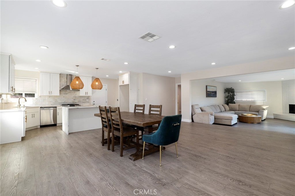 Welcome to this beautifully updated 4-bedroom, 2-bath home in the heart of Gardena, where modern design meets warmth and comfort. From the moment you step inside, you're greeted by an expansive open entry that flows seamlessly into a generously sized living and family room — perfect for both everyday living and effortless entertaining. A charming, working fireplace anchors the living room/den, creating the perfect focal point for cozy evenings and intimate gatherings. The home’s thoughtfully curated color palette of soothing earth tones — soft greens, tranquil blues, creamy neutrals, and crisp whites — enhances the inviting atmosphere throughout. The open-concept kitchen is the true heart of the home, featuring a stunning center island with an eating area, stylish light fixtures, and a layout designed for gathering. Whether hosting friends or enjoying a quiet morning coffee, this space delivers both beauty and function. Both bathrooms have been tastefully renovated with striking sage green tilework paired with elegant gold hardware, offering a spa-like feel with a modern edge. The main bedroom retreat is a showstopping step-down sanctuary with soaring ceilings that add depth and character, along with an oversized walk-in closet providing exceptional storage. Outside, you’ll find wonderful front and back yards offering ample space to relax, garden, or entertain. Fully gated for added privacy and peace of mind, this property combines comfort, style, and security in one inviting package. A truly special place to call home.