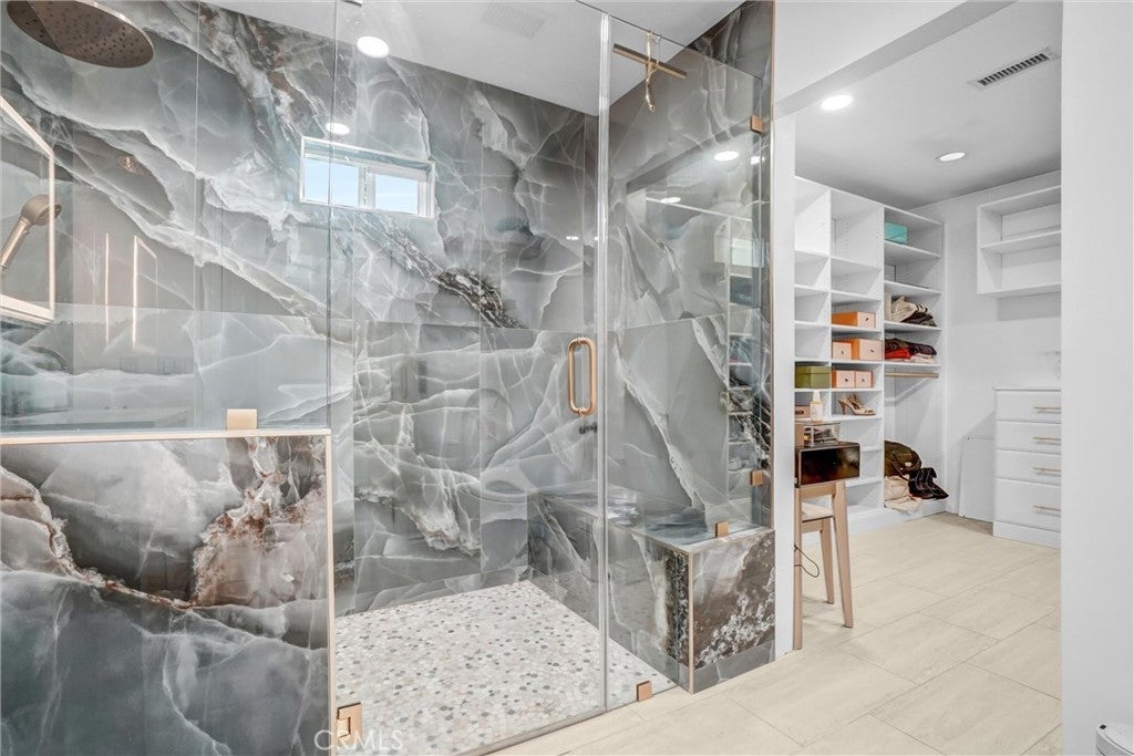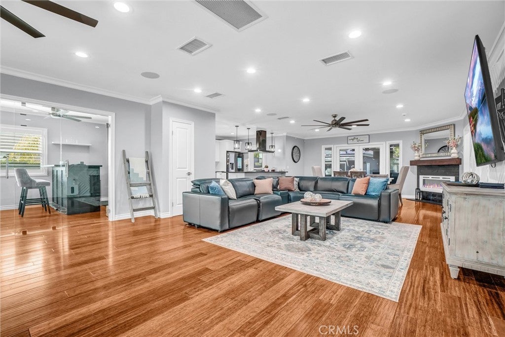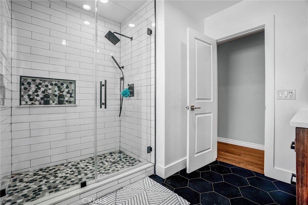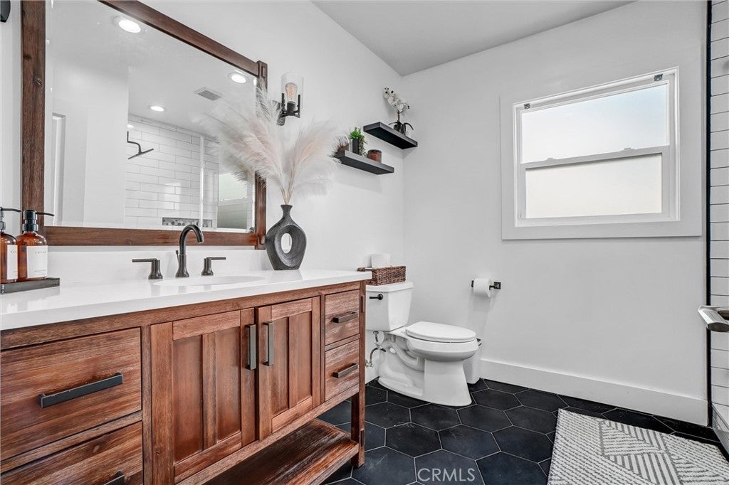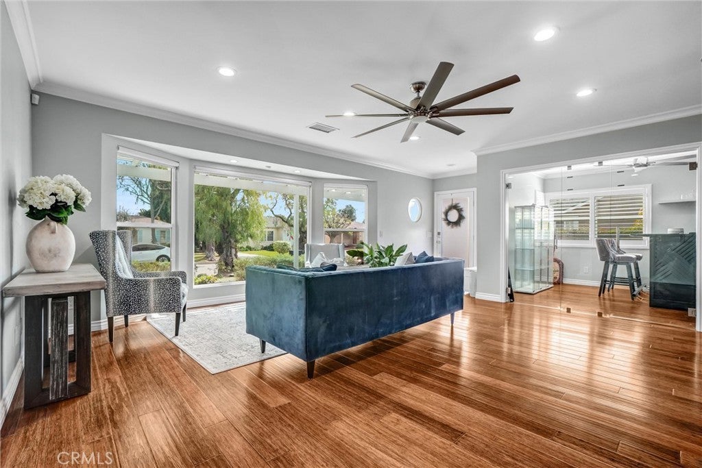 Tucked into one of Long Beach’s most sought-after neighborhoods, Lakewood Village, this exquisitely curated residence welcomes you into a world of refined comfort, quiet luxury, and effortless multi-functional living. From the moment you enter, the open concept living and dining spaces set an elegant tone, anchored by a statement fireplace, softly diffused natural light through privacy window film with UV protection, and immersive Sonos surround sound throughout the home. The experience extends outdoors to a private, resort inspired retreat featuring a covered patio with built-in lighting and ceiling fan, a dedicated barbecue area, permanent custom smart exterior lighting by EverLights and a discreet outdoor guest bath, an entertainer’s dream designed for unforgettable gatherings. Two beautifully appointed primary suites create an intimate sanctuary with en-suite baths and individual climate control, complemented by elevated finishes including a bidet toilet, Robern Uplift Tech medicine cabinet, generous walk-in storage, and a large walk-in pantry that enhances everyday living. A dedicated bar room and entertainment lounge adds a layer of indulgence, while the thoughtfully designed guest quarters with kitchenette, private bath, and independent climate control offers exceptional flexibility for extended stays or multigenerational living. Completing the home are modern luxuries including solar, whole house water filtration, central heating and air conditioning, a smart thermostat, integrated security system, tinted windows for privacy and wood floor protection, and a finished garage with built-in cabinetry, storage room, laundry area, and keypad entry an exceptional offering in one of Long Beach’s most desirable neighborhoods, where elevated living becomes an everyday experience.