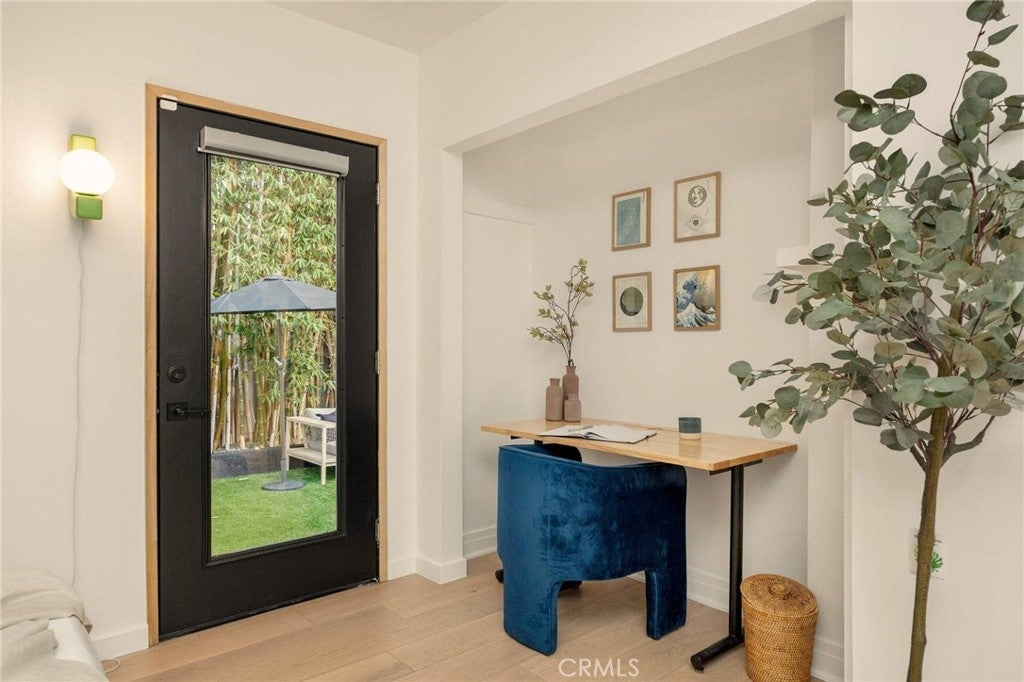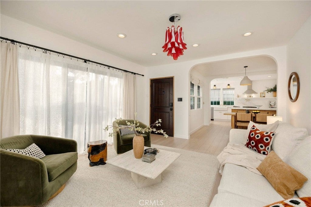 Sellers are accepting backup offer. Nestled in a coveted Los Angeles neighborhood, this beautifully updated 2-bedroom, 1-bath California bungalow blends timeless character with modern sophistication. Enter through the private, hedged, and gated front porch to discover sunlit interiors with designer finishes and an effortless flow between the formal living room, dining area, and newly remodeled kitchen with center bar — perfect for entertaining. Gorgeous light oak floors run throughout, adding warmth and style. A stunning new front deck extends directly from the living room, creating an ideal setting for indoor-outdoor living and effortless hosting. Surrounded by lush landscaping, it offers a private retreat for morning coffee or lively evening gatherings. The primary bedroom features a custom built-in closet, while the second bedroom opens to a spacious backyard oasis with soaring bamboo and curated plantings — a serene escape in the heart of the city. All of this, just blocks away from cultural favorites like Galerie Jeffrey Deitch and David Zwirner, everyday convenience at Sprouts, and celebrated dining destinations including Tartine, Sightglass, and The Benjamin. https://youtu.be/M2X4ZHeXkvg