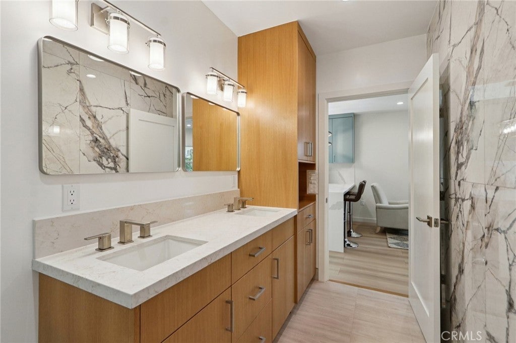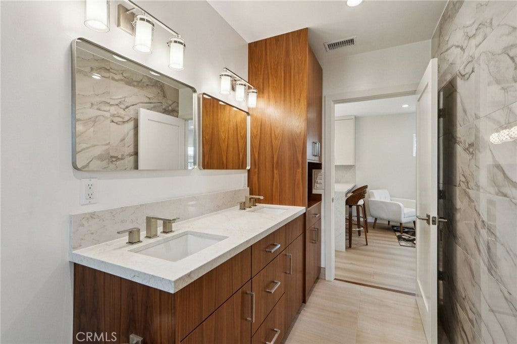 This one may sound like a unicorn. Spoiler alert: it’s very real—and it’s sitting on half an acre in Reseda. Completely remodeled from head to toe, this property delivers space, style, and flexibility in a way that’s getting harder to find. The 1,873 sq ft single-story main house is light, bright, and designed for real life. A welcoming family room flows into an open great room where the kitchen, dining, and living areas come together effortlessly—perfect for everyday living or hosting without trying too hard. The kitchen is equal parts polished and practical, featuring quartz countertops, stainless steel appliances, and a large island that anchors the space. Laminate flooring runs throughout, with clean tile finishes in the kitchen and bathrooms. Three spacious bedrooms include a serene primary suite with an en-suite bath offering a separate tub and shower, complete with rainfall showerhead and handheld. A stylish hall bath rounds out the main home. Then comes the mic drop: a brand-new, fully furnished, detached 2-story ADU spanning nearly 1,200 sq ft with 2 bedrooms and 2 bathrooms. Modern, fresh, and beautifully finished with waterfall quartz countertops, stainless steel appliances, and sleek finishes. Ideal for extended family, guests, or income potential that actually feels like a smart move. Outside, the massive flat, usable lot feels like your own private retreat—walking paths wind through lush landscaping, gardens, and fruit trees throughout. Add an outdoor patio, BBQ area, and sports court, and weekends suddenly book themselves. Every system has been upgraded: new roof, plumbing, electrical, HVAC, insulation, siding, flooring, kitchens, baths, paint inside and out, plus a tankless water heater, owned solar panels, camera system, permitted 400-amp panel, new exterior gates, and extra storage built into the front of the home. A 2-car garage and generous driveway with room for an RV to seal the deal. A property with this much space, versatility, and flexibility doesn’t come along often. Don’t sleep on this opportunity.
