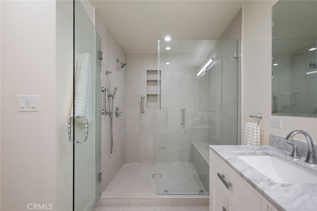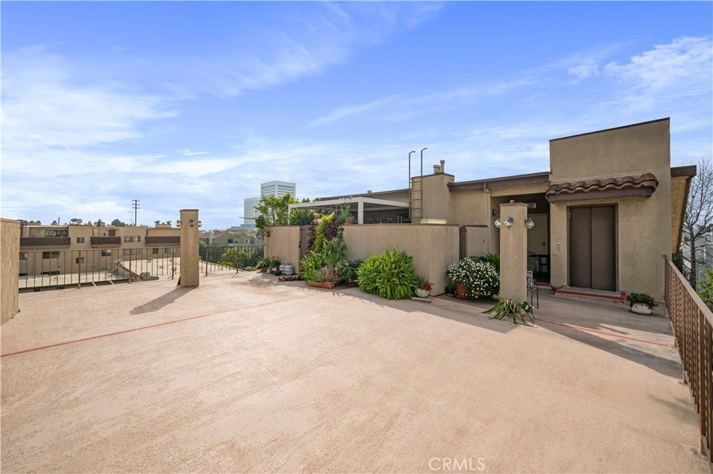 Tucked away at the end of a charming, tree-lined cul-de-sac, this beautifully updated rear corner residence offers the perfect blend of privacy, space, and refined comfort. Situated within an intimate six-unit building, this expansive 2-bedroom, 2-bath condo spans approximately 1,573 square feet. Step inside to soaring 10-foot vaulted ceilings, rich hardwood floors, and an elegant fireplace that anchors the sophisticated living room. French windows fill the home with exceptional natural light, enhancing the warmth and openness of the space. Crown moldings, recessed lighting, and custom built-ins add timeless character and thoughtful detail throughout. The formal dining room flows seamlessly from the kitchen to a private balcony, creating a welcoming indoor-outdoor ambiance. Designed with both functionality and connection in mind, the spacious eat-in kitchen offers abundant cabinetry, generous prep space, and ample room to gather. Whether entertaining guests or enjoying a quiet evening at home, this thoughtfully designed space balances any occasion. Both bedrooms are impressively proportioned, offering comfort and versatility, and are enhanced with custom built-ins that provide stylish appearance, and efficient storage solutions. The expansive primary suite is a true retreat—generously scaled to accommodate a sitting area and complemented by a large walk-in closet designed to meet all your wardrobe needs. Completing the home, both bathrooms have been tastefully renovated with quality finishes and refined details, delivering a fresh, modern aesthetic feel. Additional features include in-unit washer and dryer, abundant storage, garden & rooftop deck access, and the rare advantage of a location at the back of the property—providing exceptional peace and privacy. Ideally and centrally located just minutes from Westwood, UCLA, Century City, and access to the 405, this home offers effortless convenience to the very best of everything while remaining discreetly tucked away from it all.