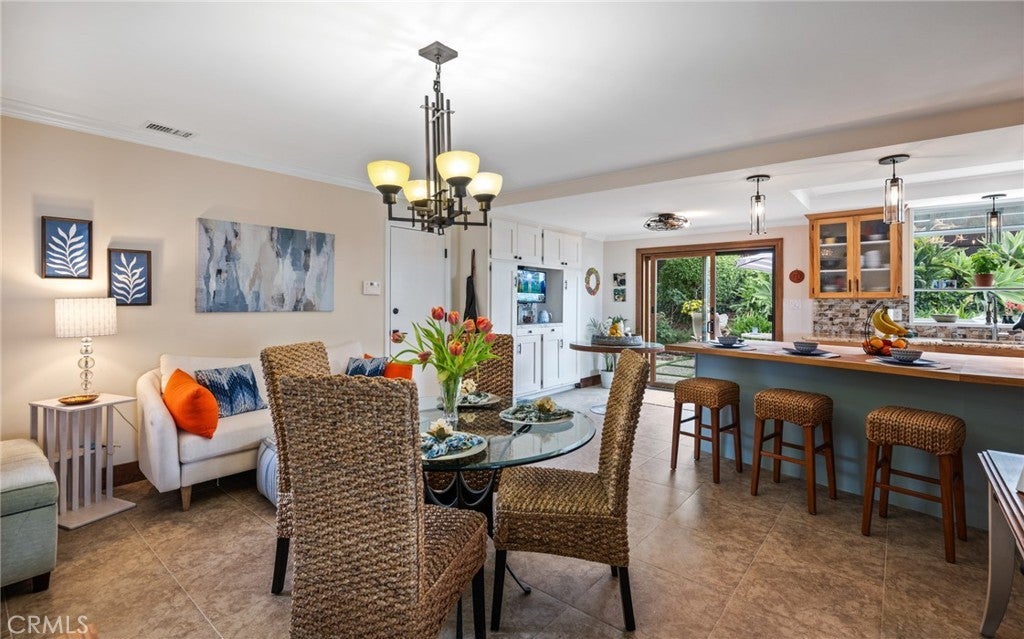 • Interior FeaturesBreakfast Bar, Ceiling Fan(s), Eat-in Kitchen, Granite Counters, Recessed Lighting, Tile Counters, Bedroom on Main Level, Main Level Primary, Primary Suite, Crown Molding
