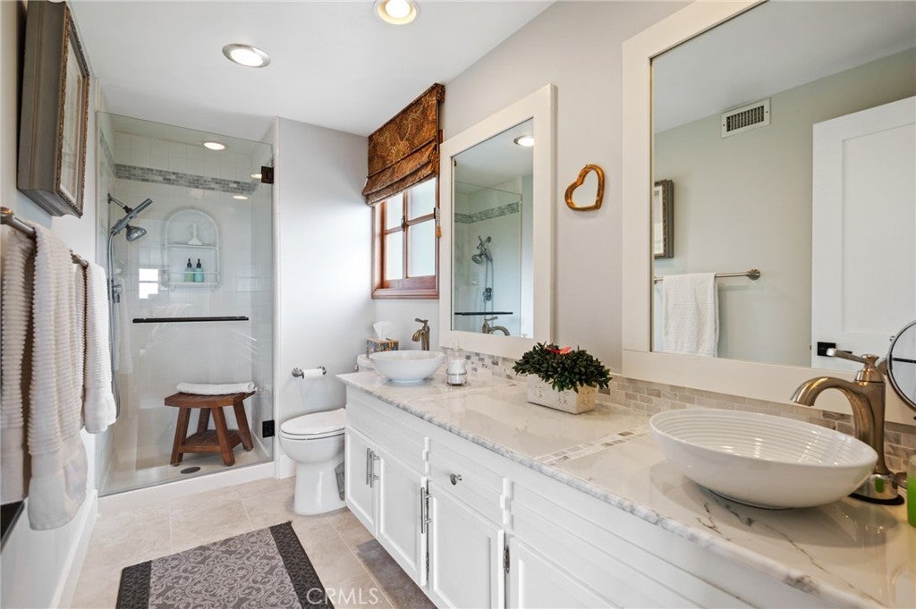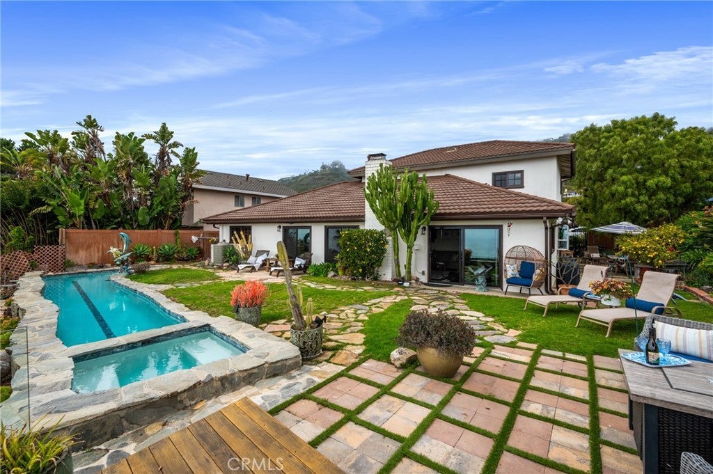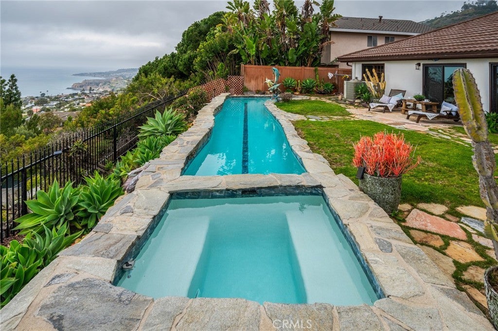Welcome to your dream home in the highly sought-after community of Ladera Linda. Situated on the view side of Vigilance Dr, this stunning residence boasts 4 beds, 3 baths and is the perfect blend of comfort, style, and an outdoor paradise with breathtaking ocean and Catalina Island views, making it the ideal sanctuary! Ladera Linda is south facing, offering the best weather on the hill, and has underground utilities. The large formal entry with clear views of the ocean welcomes you to this retreat. The open-floor plan features a central staircase and provides a comfortable flow to each room. The large kitchen with living and eating area has a 6 burner gas range with convection oven, custom hickory wood peninsula and a slider to the lush side patio. The living and dining areas with huge ocean views offer a gas fireplace for cooler evenings. The spacious 1st floor primary suite is a true retreat, offering breathtaking ocean and coastline views. It features a large open dressing area with built-in closets and plenty of shelving, a remodeled primary bath with tile flooring and oversized shower with bench, rainfall showerhead and separate handheld. Bask in the sunshine and enjoy Catalina views while lying in bed or transform your day through the slider to the outdoor patio. The backyard resort-style living provides your own lap pool and spa, flagstone paths through natural grass and a redwood deck with sprawling views of Catalina, Terranea and the coast. Driveway pavers, wrought iron fencing, and Andersen Windows and doors add to the exterior's charm. There is so much more to see! Located in the award-winning Palos Verdes Peninsula Unified School District, this home is close to Golden Cove shopping and restaurants, Terranea Resort, Trump National Golf Course, and hiking trails. Experience coastal living at its finest. Don’t miss this rare opportunity to own a slice of paradise!
