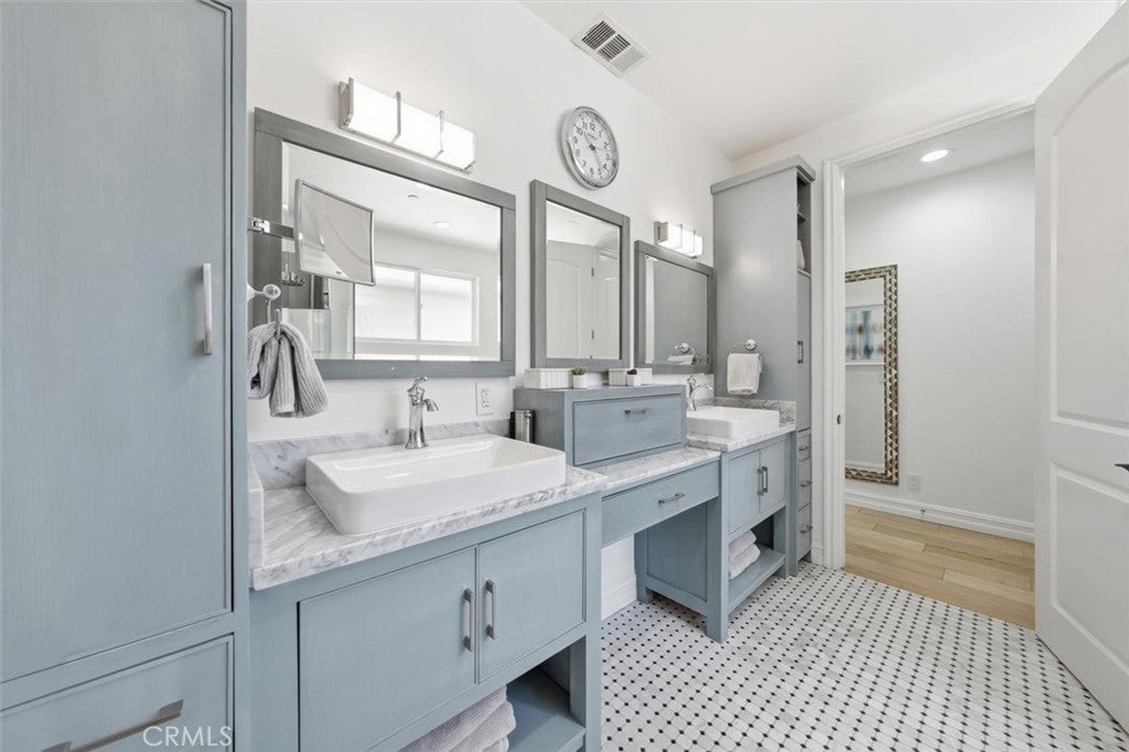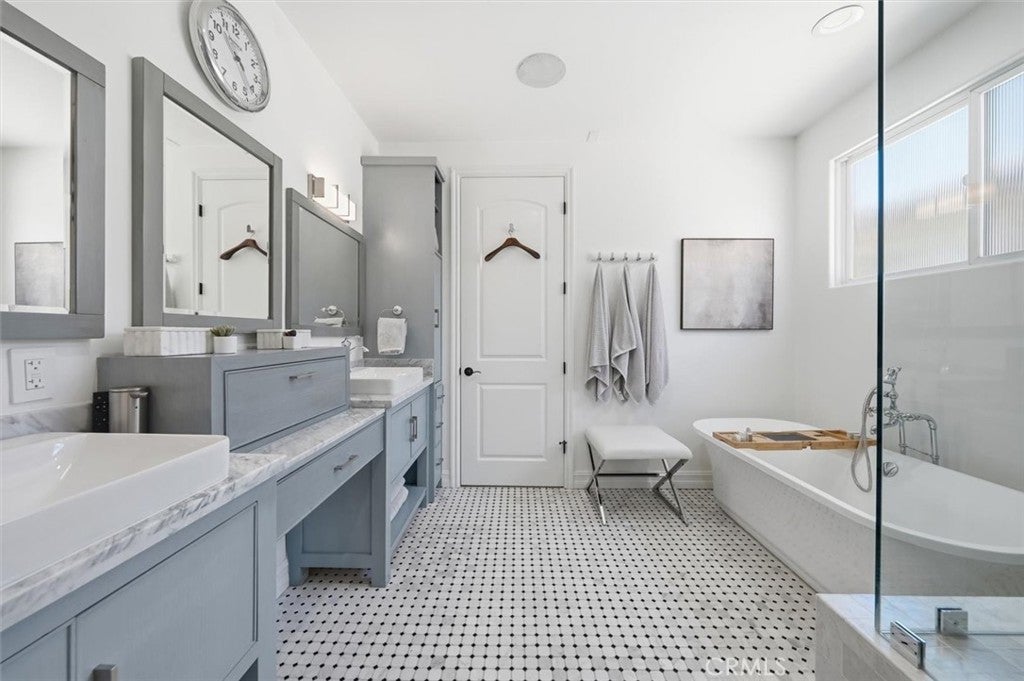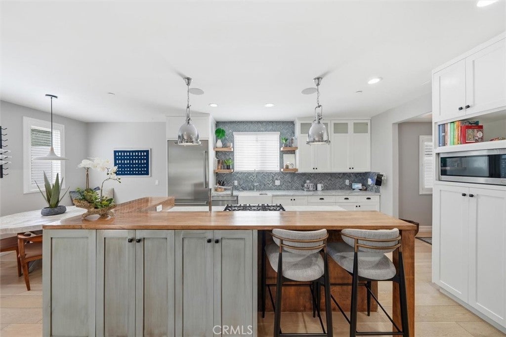 Perched on a coveted South Redondo hillside, this stunning Mediterranean-Spanish home offers elevated coastal living with breathtaking ocean views and an abundance of natural light. Seamlessly blending timeless architectural charm with modern finishes, this 3,300+ square-foot residence is both sophisticated and inviting. The home features five bedrooms and five bathrooms, including a private first-floor en-suite perfect for multi-generational living or hosting guests. Entertain effortlessly in the grand open-concept chef’s kitchen, complete with a dramatic two-tiered island, custom cabinetry, generous storage, and a stylish herringbone backsplash that adds texture and character. The kitchen flows directly into the spacious family room, making it ideal for gatherings. Upstairs, a bright corner nook serves as a home office or cozy reading space. The luxurious primary suite boasts dual walk-in closets, a spa-like bathroom for two, a private fireplace, and a balcony showcasing serene ocean vistas. Two additional en-suite bedrooms and a Jack-and-Jill bath with built-in closets ensure comfort and convenience for family and guests alike. This home features owned solar panels, significantly reducing electricity costs. Step outside to a rare, oversized backyard—perfect for entertaining, play, or creative customization. Above it all, the rooftop deck offers sweeping 180-degree coastline views, providing a front-row seat to stunning Pacific sunsets. South Redondo Beach is renowned for its natural beauty, award-winning schools, wide sandy beaches, and exceptional dining, shopping, and entertainment options. With a mild climate year-round, enjoy surfing, hiking, beach volleyball, and paddle-boarding just minutes from your doorstep.