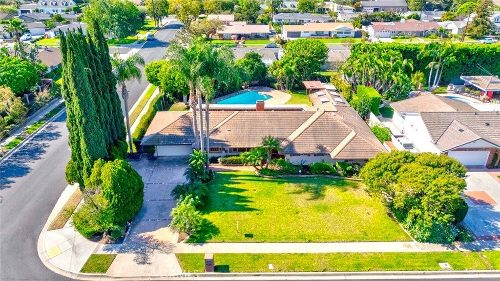 Welcome to this beautifully maintained four-bedroom, three full-bathroom ranch-style home situated on a stunning 0.41-acre corner lot in one of North Tustin’s most desirable neighborhoods. This private oasis features lush, well-manicured landscaping and a variety of mature citrus, and avocado trees, creating a peaceful outdoor setting. The backyard is designed for relaxation and entertaining, complete with a large swimming pool, inviting back porch, and a full sprinkler system to maintain the property’s vibrant grounds. Inside, the 2,450-square-foot home offers a warm and welcoming atmosphere with a comfortable, family-friendly layout and spacious living areas. The home features two fireplaces, a large family room and living room, and convenient laundry hookups. Included are owned solar panels, providing energy efficiency and long-term savings. The primary suite includes a unique private spa room retreat, offering a serene space to unwind directly connected to the bedroom. Located just minutes from shopping and dining at the Tustin Foothills, this home also falls within the highly regarded Tustin Unified School District. Don’t miss the opportunity to own this exceptional property that combines space, privacy, and prime location in North Tustin.