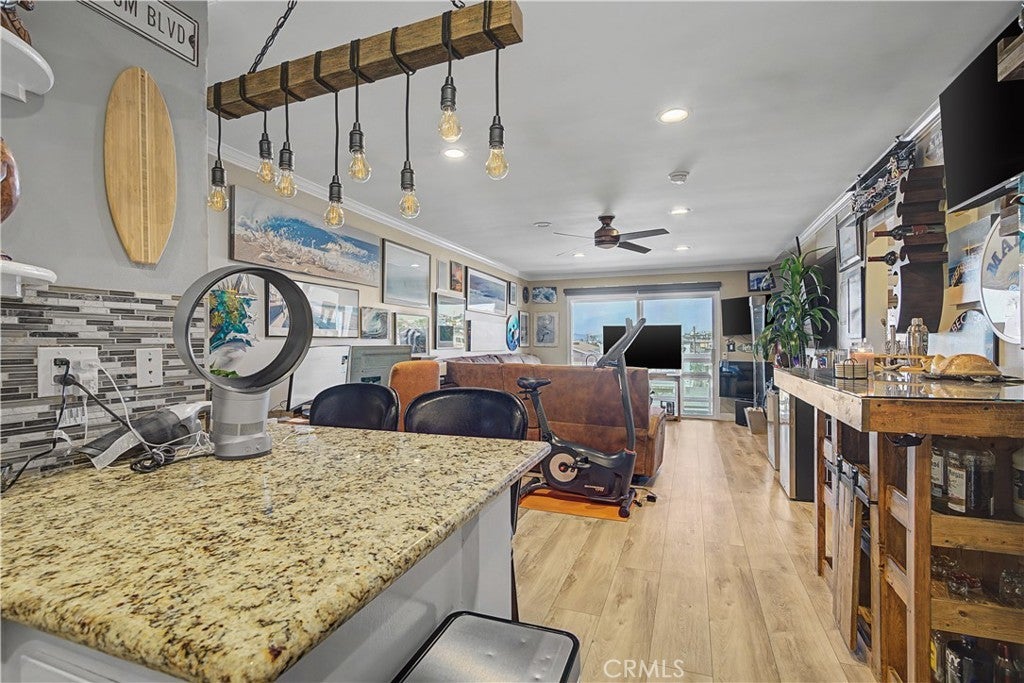 Welcome to this beautifully updated 2-bedroom, 2-bath coastal residence in the heart of Hermosa Beach. Step inside and immediately feel the fresh, modern ambiance created by brand new wood floors, natural light, and stylish finishes throughout. This is a third floor unit, looking out over the neighborhood, above the rooftops with mountains in the background. Feels very spacious as you walk in the door. The completely remodeled bathrooms offer a spa-inspired retreat, while the kitchen shines with newer countertops that complement the open living and dining areas. Motorized window blinds add a sleek touch of comfort and convenience. Picture yourself starting the day out on the deck, coffee in hand, with ocean breezes and ending it with vibrant coastal sunsets. Perfectly positioned steps from the sand and directly across from Noble Park, this home places you moments from Hermosa Beach Pier, local boutiques, and popular restaurants. Enjoy effortless access to the Strand, beach volleyball courts, and endless ocean activities just outside your door. This is a rare opportunity to experience the vibrant Hermosa Beach lifestyle in a beautifully refreshed coastal home.