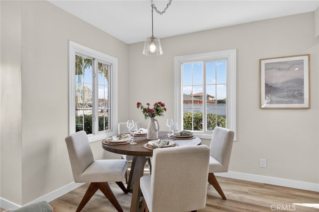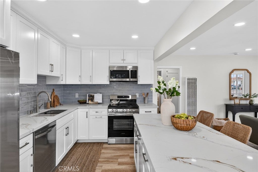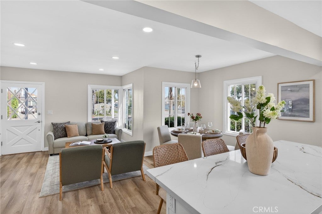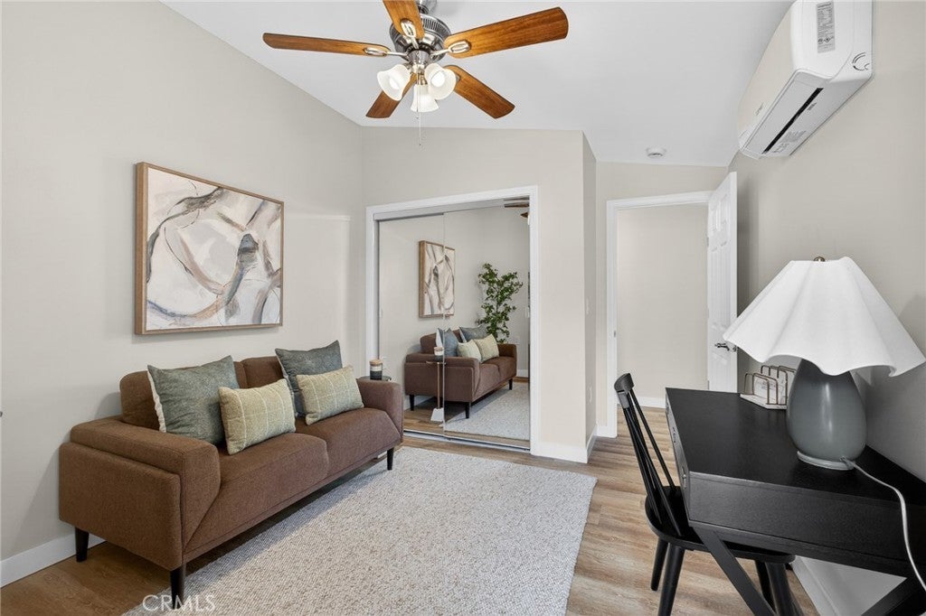 Immaculate remodeled starter home featuring three bedrooms, a den, and two bathrooms. This beautifully updated single-family home offers fresh interior finishes throughout, including a new kitchen, two newly remodeled bathrooms, and brand-new flooring. Two mini splits offer cool A/C to "chill" on warm summer days! Enjoy a spacious layout in a wonderful commuter-friendly location close to freeways, shopping, and popular eateries. The home also features an attached two-car garage and generously sized front and rear yards. Perfect for first-time homebuyers or growing families, this home offers plenty of space for family gatherings, get-togethers, and backyard barbecues. The large backyard provides ample room for kids and dogs to play and enjoy the outdoors.