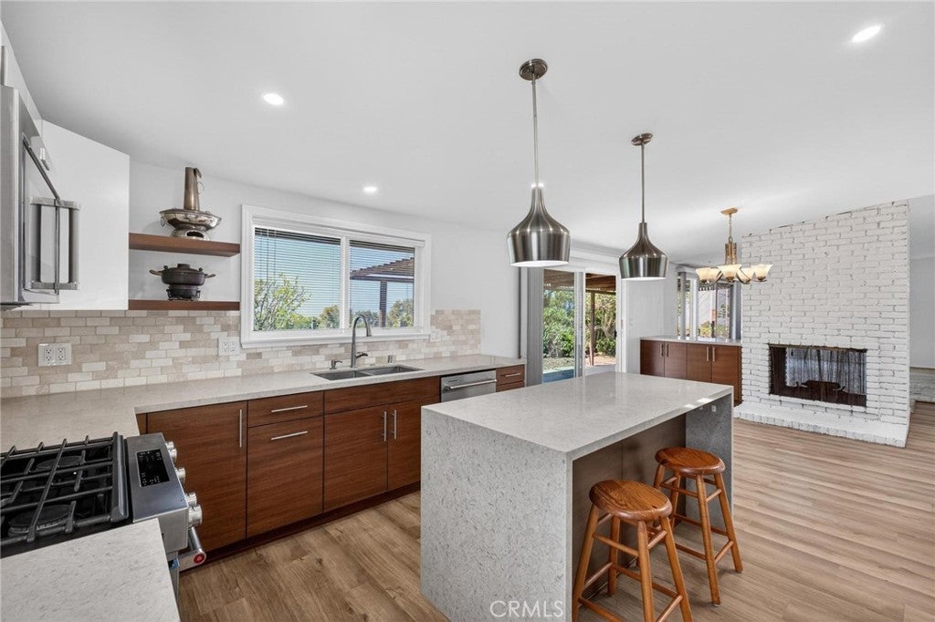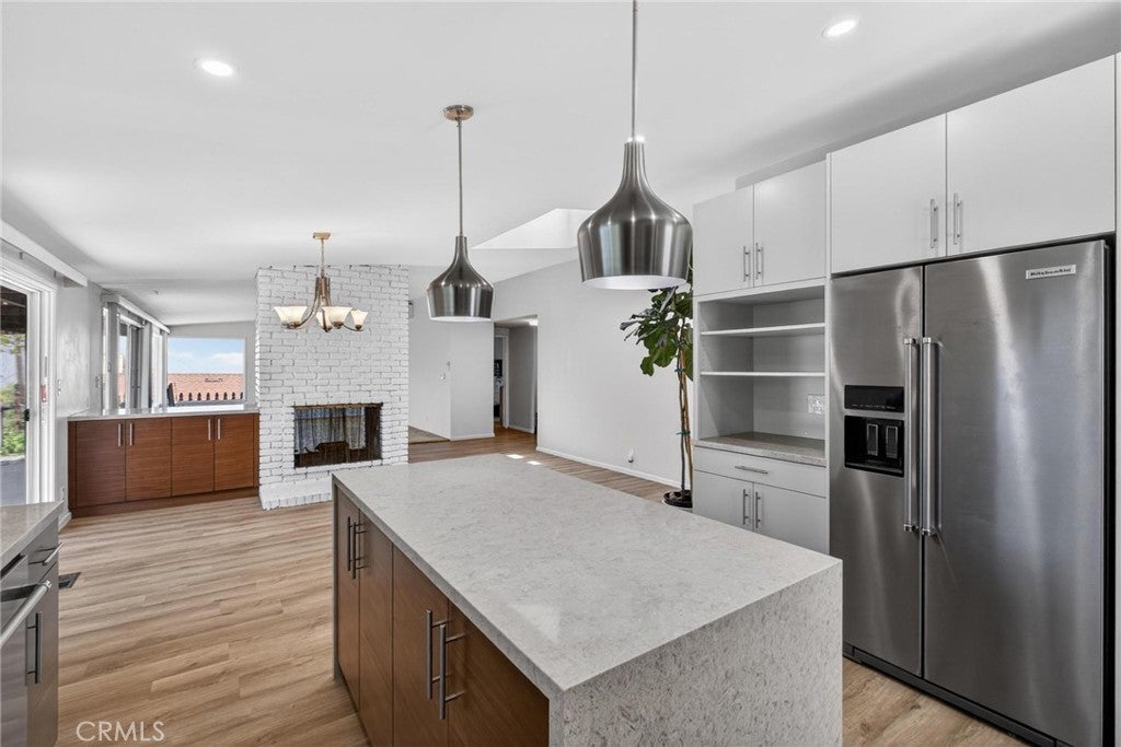 Experience the comfort and ease of single-level living in this first-time-on-the-market home since 1974. Thoughtfully positioned to capture coastline views, this 4-bedroom residence offers a unique combination of space, light, and lifestyle. The expansive living and family areas feature an open layout, highlighted by a dual-sided fireplace that creates a natural flow between spaces. Large glass doors and windows invite natural light and frame the backyard and coastal views, blending indoor comfort with outdoor serenity. Step outside to a peaceful backyard setting—perfect for relaxing, entertaining, or simply enjoying ocean breezes by day and sparkling city lights by night. The kitchen, updated approximately 2.5 years ago, features quartz countertops and KitchenAid appliances. While recent upgrades—including A/C (serving the living room and primary bedroom), furnace, water heater, exterior paint, and gutters—provide both comfort and peace of mind. The private primary suite is thoughtfully separated from the other bedrooms, offering retreat, while three additional bedrooms share a conveniently located hallway bathroom with skylight. Located within the award-winning Palos Verdes Peninsula Unified School District and just minutes from shopping, dining, and everyday conveniences, this home offers long-term livability in one of the South Bay’s most desirable coastal communities. Homes with this combination of single-level layout, view, and location rarely become available—don’t miss the opportunity to make it your own.