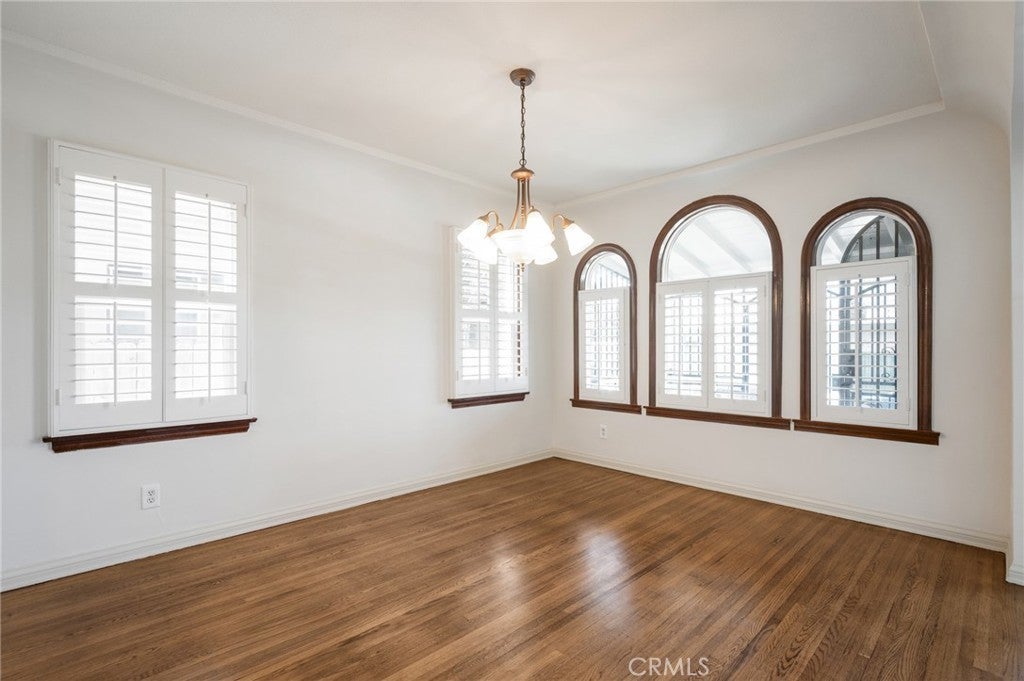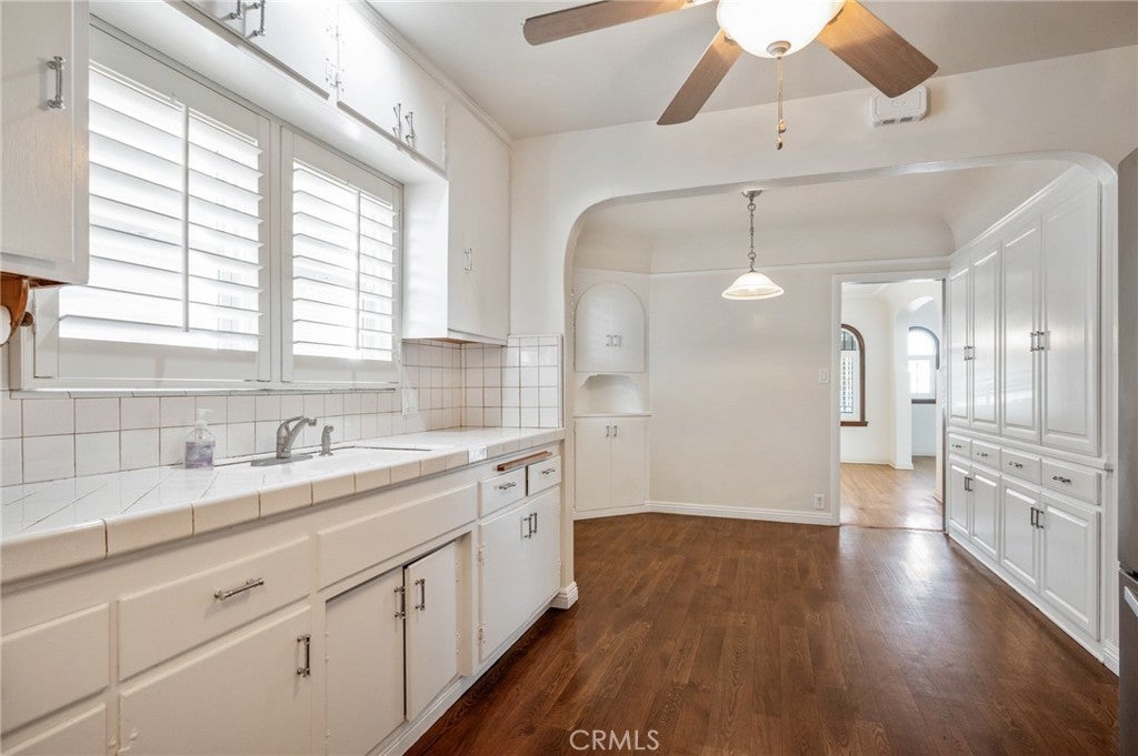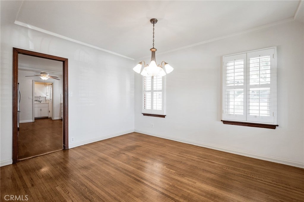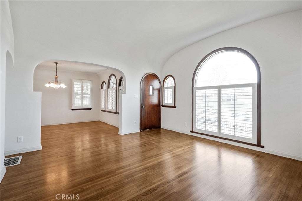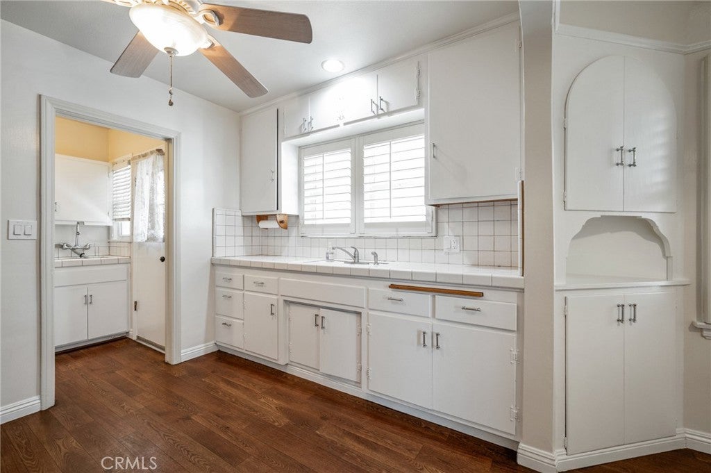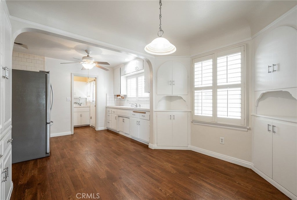 SUPER CHARMING three-bedroom, two-bath Spanish-style home filled with warmth and character. This inviting residence features a spacious living room highlighted with a large, beautiful arched picture window that fills the room with natural light. The kitchen offers abundant cabinetry, providing plenty of storage. Enjoy the large dining area with plenty of room for those bigger gatherings. Generous laundry room features a utility sink and more storage space. There are classic shutters throughout the home. Step outside to a private backyard with mature fruit trees. This property also includes two detached single garages, plus an additional parking spot. Conveniently located close to shops, restaurants, parks, schools, and freeways.