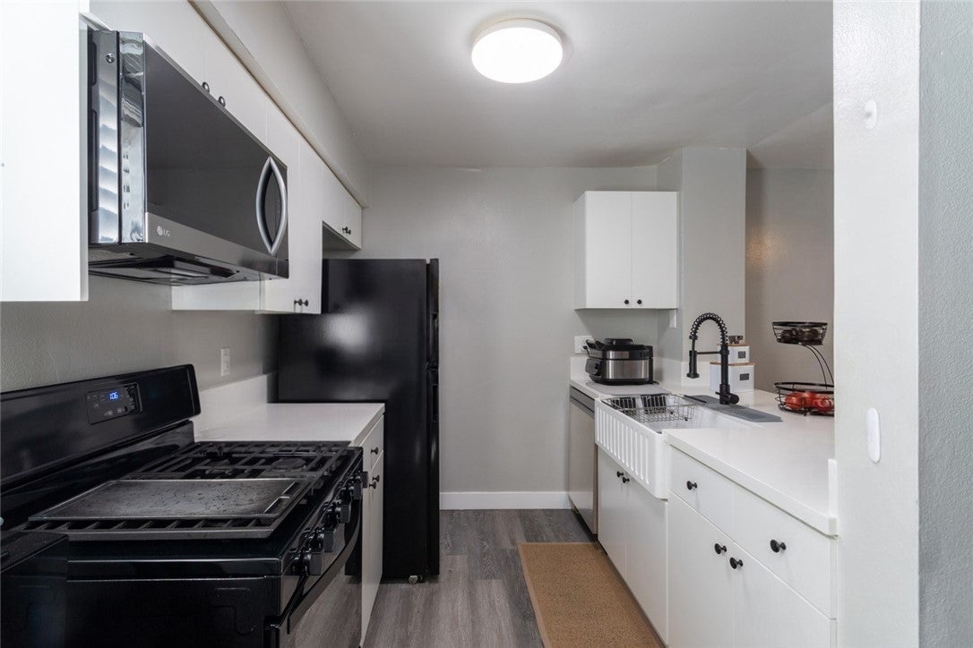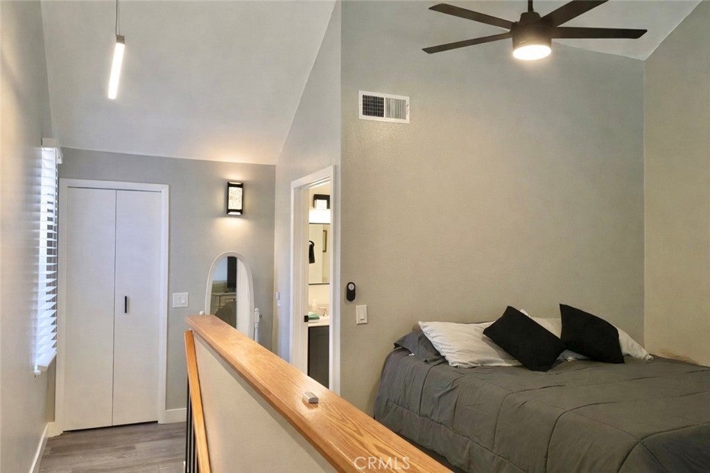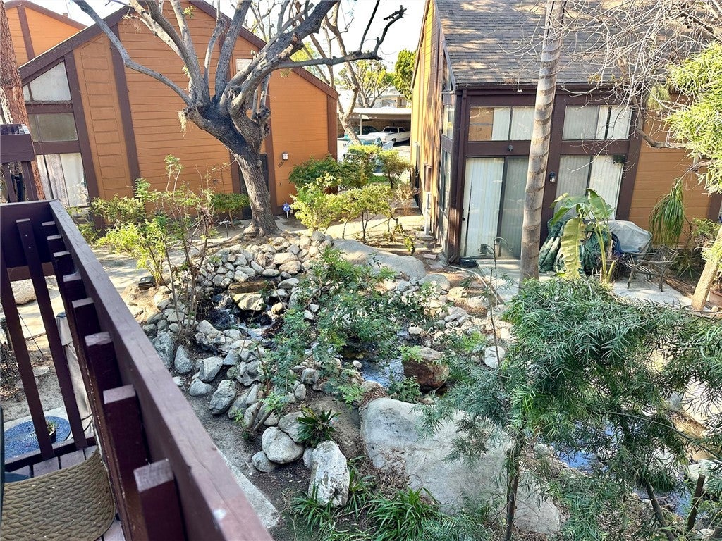 Welcome home to the desirable gated community of Benton Bay in the City of Norwalk. This gorgeous 1-bedroom, 1-bathroom condo is surrounded by beautiful pine trees, bubbling brooks, streams, rocks, ducks, and waterfalls—creating a peaceful mountain-like setting rarely found in Los Angeles County. A true hidden gem, this home has been thoughtfully renovated and meticulously maintained, blending modern upgrades with warmth and character. The bright and spacious interior features brand-new, durable flooring, a beautiful new wooden staircase, fresh paint throughout, updated fixtures and fans, a new smart thermostat (A/C and heating) and a fully renovated kitchen complete with new quartz countertops, cabinetry with ample storage, and a new dishwasher. The open floor plan showcases floor-to-ceiling storefront and clerestory windows, filling the home with natural light. The elevated bedroom loft overlooks the living area and features approximately 10-foot vaulted ceilings, a newer ceiling fan with remote control, and a walk-in closet. The bathroom has been beautifully updated with new tile flooring, a sleek sink, an updated faucet and showerhead, a new mirror, and a custom vanity. Enjoy your morning coffee or evening glass of wine on the private balcony overlooking tranquil ponds and the soothing sounds of flowing water. The unit includes one assigned covered parking space with plenty of guest parking available. Benton Bay offers resort-style amenities, including a pool, spa, gym, dog park, and clubhouse. Conveniently located near major freeways (105, 5, 605, 91), the San Gabriel River Bike Path, dining, shopping centers, Costco, Kaiser, and local schools. If you're looking for a beautiful home that combines city convenience with the tranquility of nature, this Benton Bay condo is the perfect place to call home.