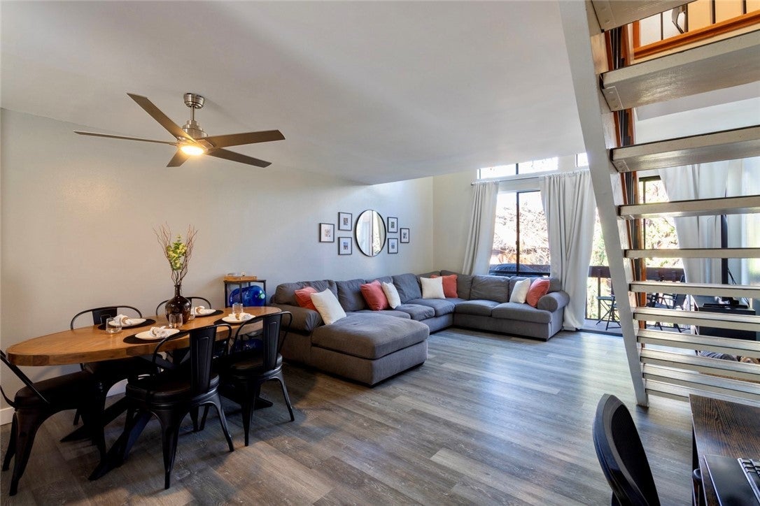 • Interior FeaturesBeamed Ceilings, Breakfast Bar, Balcony, Ceiling Fan(s), Cathedral Ceiling(s), High Ceilings, Open Floorplan, Quartz Counters, Loft, Walk-In Closet(s)