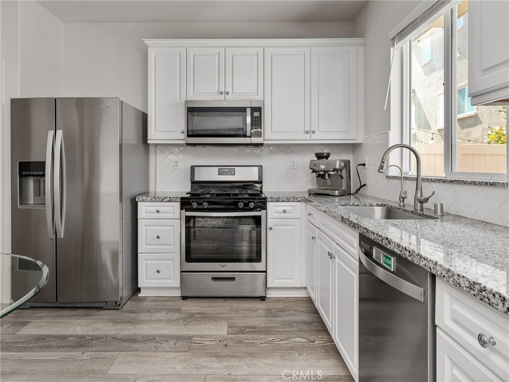 Welcome to 11819 Verona Lane, a beautifully crafted home built in 2019 and located within the desirable gated community of Vista Pointe. Thoughtfully designed, this home offers modern comfort, stylish finishes, and a seamless layout ideal for everyday living and entertaining. The main level features an open and airy floor plan highlighted by contemporary vinyl plank flooring and an abundance of natural light. The spacious kitchen showcases crisp white cabinetry, a classic subway tile backsplash, and sleek stainless steel appliances, creating a bright and inviting space that flows effortlessly into the living and dining areas. Upstairs, three generously sized bedrooms and three well-appointed bathrooms provide ample space and privacy. Outside, the beautifully landscaped backyard offers a private retreat perfect for relaxing or entertaining, complete with a covered hot tub and a smart drip irrigation system. Modern conveniences elevate the home even further, including app-enabled smart locks and a 220V outlet in the garage for electric vehicle charging. Residents of Vista Pointe also enjoy access to a private community park featuring a walking trail and playground. Ideally situated with easy access to major freeways including the 105, 405, and 110, this home is a rare opportunity to enjoy modern living in a secure and well-maintained community.