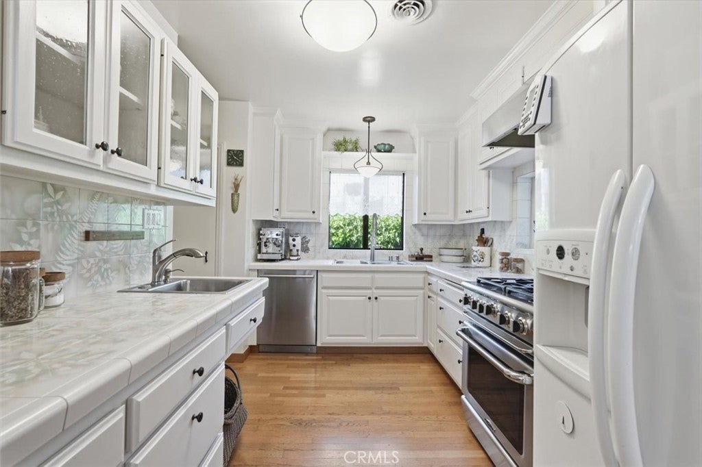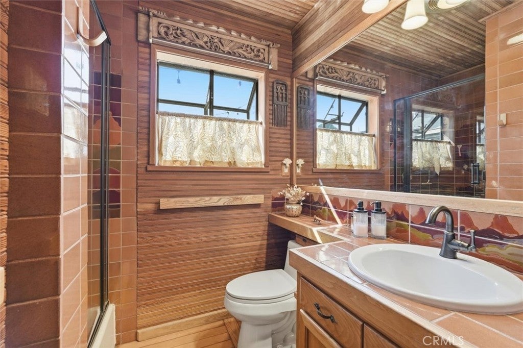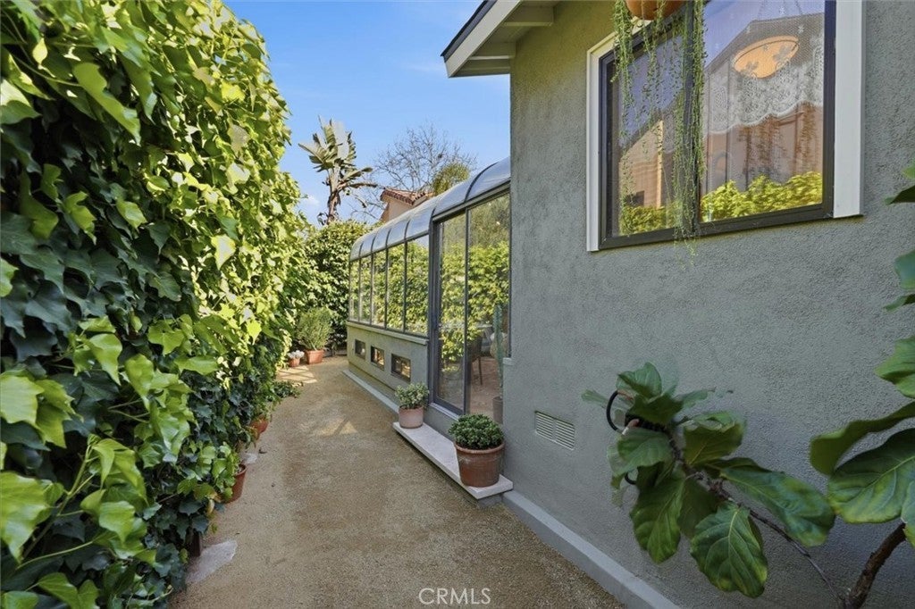 Tucked into a special pocket of Redondo Beach on a quiet cul-de-sac, this is a home with warmth, character and a rare sense of serenity. Surrounded by native landscaping and anchored by a beautiful mature olive tree, the home makes an immediate impression with its rich wood siding, wood garage door and inviting approach. A cozy wood front patio creates the perfect place for morning coffee, an evening glass of wine or simply enjoying the peaceful setting before you even step inside. Beyond the front door, the home reveals a truly special feel—welcoming and filled with details that give it a sense of permanence and soul. The living room is both comfortable and charming, centered around a wall lined with built-in bookshelves and warmed by original hardwood floors that add timeless character. A striking three-sided fireplace connects the living room, dining area and kitchen, creating a wonderful sense of flow and making each space feel intimate yet connected. The dining area is spacious and open, ideal for everyday meals or entertaining, and connects seamlessly to the kitchen, where crisp white cabinetry and a stainless-steel stove and oven bring together classic style and function. An interior window opens from the kitchen to the sunroom, adding personality and an easy connection between the spaces. Accessed from the main living area, the sunroom is one of the home’s most distinctive features, with Saltillo tile floors inlaid with hand-painted accents, curved windows and a lush green privacy hedge that surrounds the space in natural beauty. Built-in cabinetry and a sink make it an ideal flex space for relaxing, working, or creating. Two secondary bedrooms feature hardwood floors and share a bathroom with wood walls and custom tile. Privately situated apart from the secondary bedrooms, the en-suite primary offers a cozy retreat with soft carpet and sliding doors that open to a large private deck—an ideal extension of the room and a place to unwind. Completing the home is a new roof, an oversized attached garage with exceptional versatility, featuring a built-in desk area with cabinetry, multiple windows and glass ceiling panels that bring in natural light. Air conditioning, abundant exterior storage and the home’s many lovingly considered details only add to its appeal. Far from a typical South Bay property, this is a home with heart, individuality and a truly special atmosphere that you feel the moment you walk in.