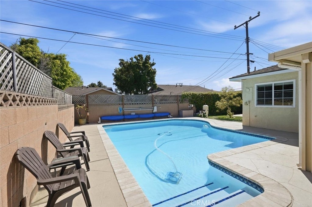 Located in the highly desirable Hickory Park neighborhood of Torrance, this beautifully maintained home combines thoughtful upgrades with comfortable indoor-outdoor living. Smooth ceilings and recessed lighting create a bright, modern feel throughout the main living areas, while updated flooring features laminate in the living and dining rooms and porcelain tile in the kitchen, laundry room, and bathrooms. Both bathrooms have been tastefully upgraded, including a remodeled southwest bathroom with new plumbing, a porcelain tub and shower, maple vanity, and granite countertop, and a renovated primary bath featuring a marble tile shower, maple vanity, a granite countertop, and updated plumbing. The backyard is designed for relaxation and entertaining, highlighted by a resurfaced fiberglass pool, solar pool heating system, stamped concrete pool deck, and a natural gas hookup ready for your BBQ. Mature mango and avocado trees (dwarf versions) also provide some fresh fruit each year. Whether hosting friends or enjoying a quiet evening, this private outdoor space is a true highlight. Numerous functional improvements add comfort and efficiency, including dual-pane windows, a newer living room sliding door, an HVAC system, an upgraded electrical panel with 220V service, a tankless water heater, and a solar attic fan. Plumbing upgrades include a dedicated kitchen sewer line with a new clean-out and epoxy-lined drain pipes. Additional features include attic storage with plywood flooring and lighting, updated front and backyard sprinkler systems with automatic timers, and a newer aluminum garage door with opener. The home is wired for DirecTV in the bedrooms and living room, with Spectrum internet service, and includes a Ring video doorbell and floodlight camera. The house is a 4-minute walk to Hickory Elementary School and a 5-minute walk to Hickory Park. This is a wonderful opportunity to enjoy the charm, convenience, and strong sense of community that make Hickory Park so special.