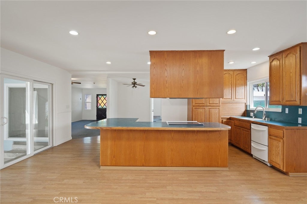 From the moment you arrive, this spacious and charming North Torrance home welcomes you with beautiful curb appeal and a bright, open layout that instantly feels like home. Brick-layered front steps, newer exterior paint and roof, and a welcoming porch set the tone. Step inside to discover one of the home’s standout features—an expansive open kitchen that flows seamlessly into the large rear living area. Designed for both everyday living and entertaining, this space boasts vaulted ceilings, a skylight that fills the room with natural light, recessed lighting throughout, and a lovely brick fireplace that adds warmth and character. The kitchen is equally impressive, featuring abundant cabinet storage, recessed lighting, and a massive island complete with overhead cabinetry, a built-in microwave, and range—perfect for gathering and hosting. Enjoy gathering or relaxing in the rear or front living spaces which includes stylish white wood siding for a clean, modern touch. Retreat into the 3 bedrooms all equipped with ceiling fans, dual pane windows, and close in proximity to the full bathroom with a tub and 3/4 bathroom with a shower. Out back, enjoy a private and inviting yard with lush grass, a covered patio for outdoor dining or relaxing, vibrant plants, a garden bed, and even a charming tree swing—creating the perfect setting to unwind or make lasting memories. The long driveway and extra deep garage has incredible versatility with 220V, ideal for storage, a home gym, tools, or all your outdoor toys. If you’re looking for charm, space, and a welcoming place to call home, this North Torrance gem is exactly what you’ve been waiting for.