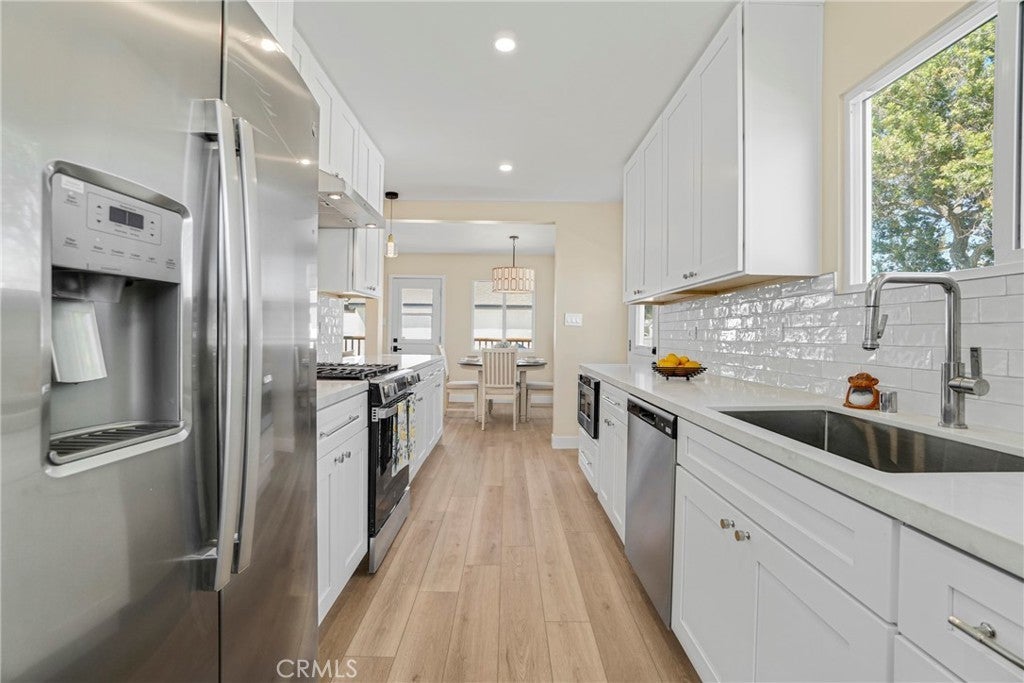 Stylishly updated single-level home ideally located near award-winning Torrance schools, local parks, shopping, dining, and Little Company of Mary Hospital, this turnkey residence offers sun-drenched spaces and modern finishes throughout. The thoughtfully re-imagined home features 3 bedrooms and 2.5 bathrooms. The stunning kitchen showcases quartz waterfall-edge countertop, new custom cabinetry, stainless steel appliances, and designer lighting. The backyard includes a sizable deck, perfect for morning coffee or watching the kids play in large back yard. Recent upgrades include new electrical,plumbing, flooring, and windows. The primary suite features an updated en-suite bath with a spacious shower, 2nd bedroom with en suite new ½ bath and the hall bath is all new with designer finishes. The home is comfortably cooled with air conditioning. Situated on a corner lot, the property includes a finished detached garage with additional storage or workspace. Just minutes from the beach and the best of the South Bay lifestyle, this home delivers refined coastal living in West Torrance’s coveted Southwood neighborhood.
