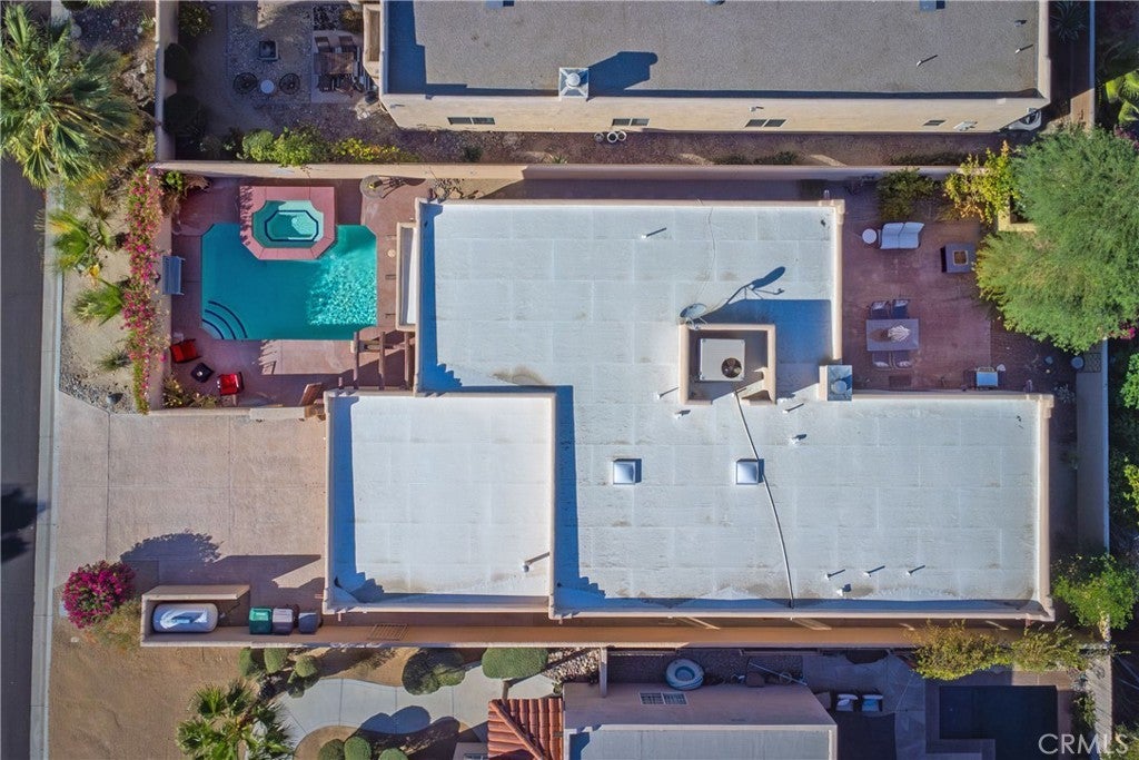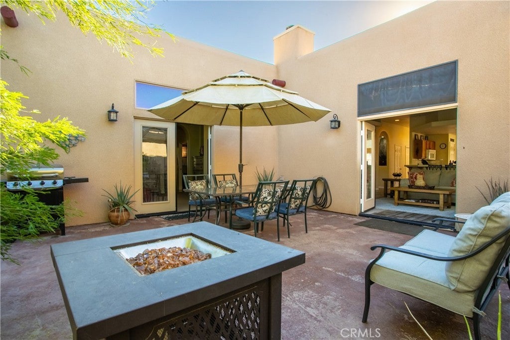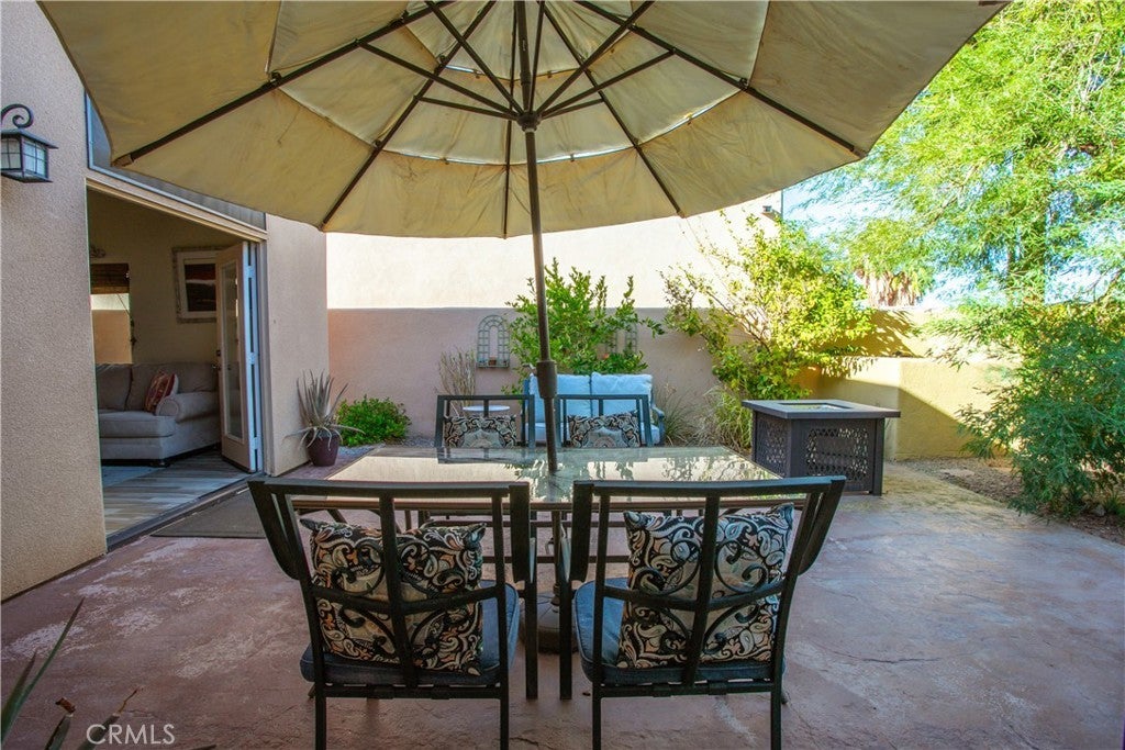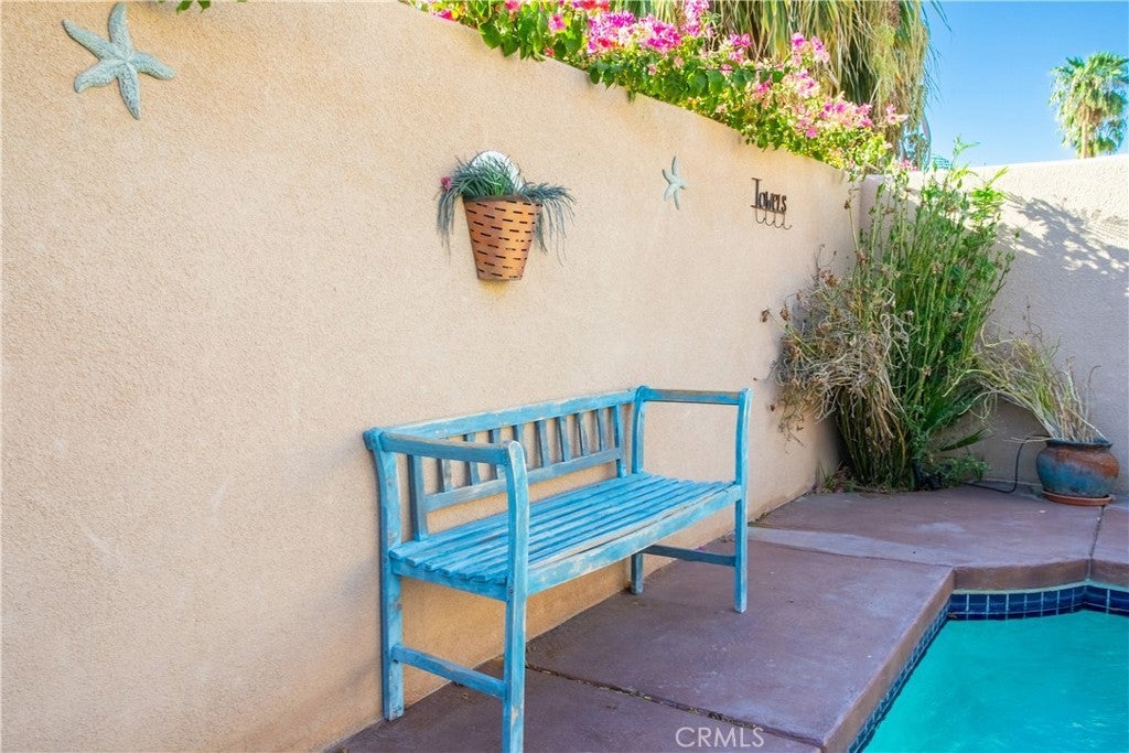 Beautifully furnished Santa Fe-style home in La Quinta Cove, priced to sell. Featuring 3 bedrooms and 2 baths, it’s perfect for either full-time living or as a desert retreat included with home amenities. The private courtyard, complete with a pool and spa, is the ideal spot to take in those stunning west-facing mountain views. Plus, the French doors connecting the pool area to the kitchen make entertaining or relaxing by the pool so much easier. The kitchen itself is a chef’s dream with its large side-by-side fridge, breakfast bar, pantry, and everything you need for a seamless cooking experience. The great room’s 12-foot ceilings and gas fireplace create a cozy, welcoming atmosphere. The spacious primary bedroom is another highlight, featuring French doors that open onto a back patio, perfect for morning coffee or unwinding in the evening. The primary bathroom offers a separate soaking tub, walk-in shower, and two large walk-in closets—plenty of space for both comfort and luxury. Other practical features like tile flooring, ceiling fans, laundry room, all appliances included, and a 2-car garage make this home incredibly convenient and truly move-in ready.