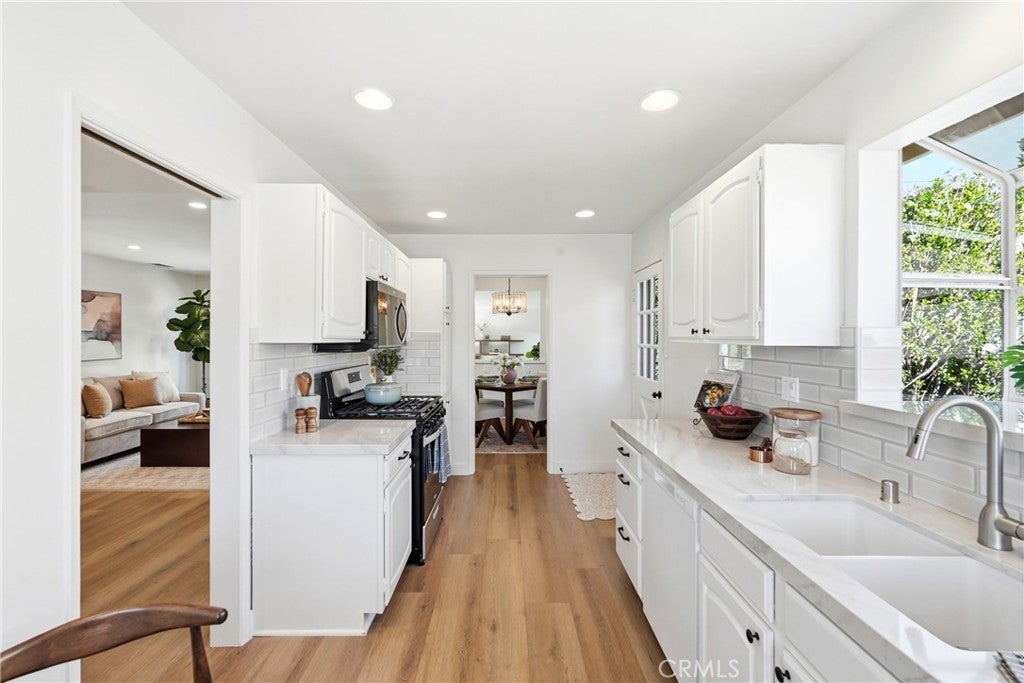 Welcome to this updated, cheerful, and truly move-in ready home, ideally situated in coveted Southwood. Thoughtfully refreshed throughout, this residence offers a bright and inviting atmosphere with modern upgrades and a highly functional layout. The light and bright kitchen features new neutral quartz countertops, a gas range, microwave, sink, faucet, and a stylish tile backsplash—perfectly blending form and function. Recessed lighting enhances both the kitchen and main living area, creating a warm, contemporary feel. A dedicated dining area adds to the home’s versatility. The primary suite offers a private retreat with a newly updated bathroom vanity, mirror, and lighting. The secondary bathroom has been tastefully refreshed with a reglazed tub/shower, new fixtures, toilet, lighting, and mirror. Fresh interior paint and newer luxury vinyl flooring throughout complete the home’s polished, cohesive look. A standout feature is the fourth bedroom, thoughtfully separated from the others—perfect for a home office, guest room, or creative space. The cozy fireplace with a wood mantle adds charm and comfort to the separate family room. Step outside to enjoy a private, spacious backyard featuring a new patio and grassy area—ideal for outdoor dining, play, or relaxation. Additional improvements include new gutters, a newer roof, and freshly painted exterior wood. The property also offers a two-car garage and a driveway with ample parking for multiple vehicles. Conveniently located near dining, shopping, and entertainment—including Del Amo Fashion Center—and just a short drive to the beautiful South Bay beaches, this home delivers the perfect balance of comfort, style, and location. A wonderful opportunity to enjoy the best of South Bay living!