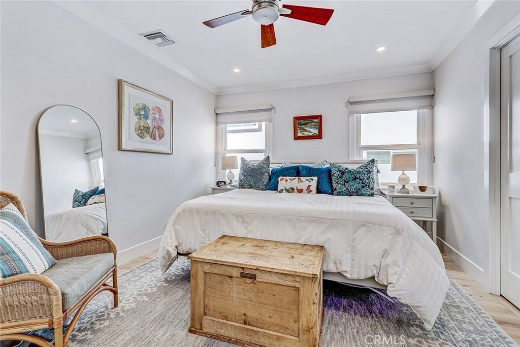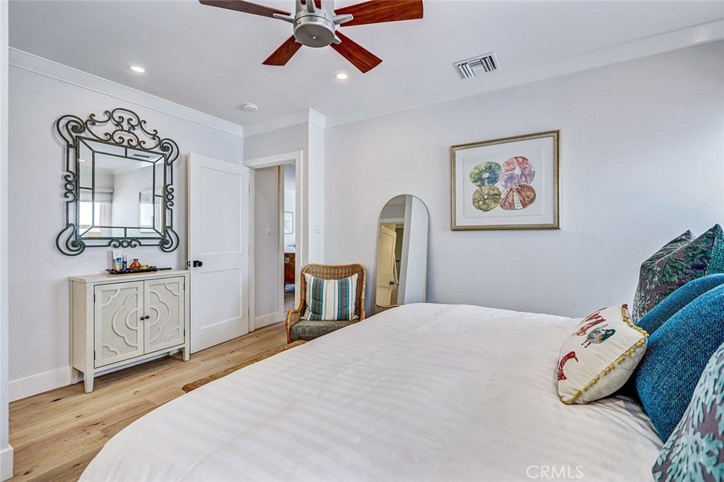 • Interior FeaturesCeiling Fan(s), Crown Molding, Living Room Deck Attached, Open Floorplan, Quartz Counters, Stone Counters, Recessed Lighting, Storage, Bedroom on Main Level, Walk-In Closet(s)