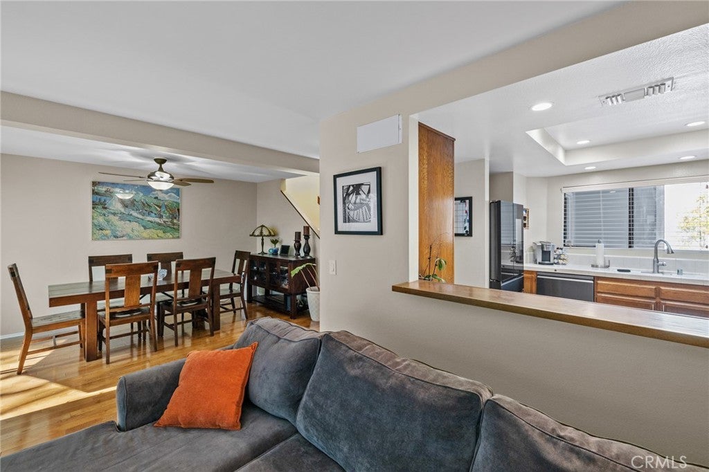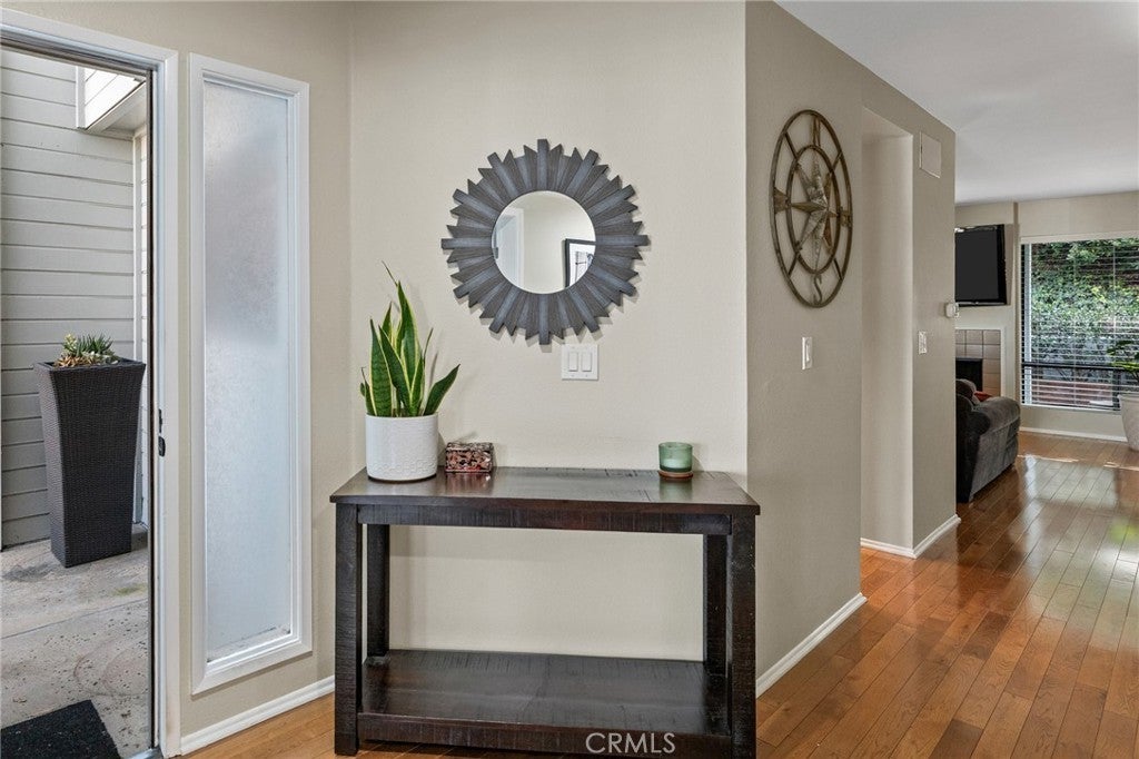 Prepare to fall in love with the architectural charm and coastal allure of the award-winning Baywatch community. This inviting Cape Cod-style townhome is quietly tucked away from the main road, offering privacy while still being part of one of San Pedro’s most desirable neighborhoods. From the moment you step inside, you are welcomed by a light-filled, open-concept living space where the living, dining, and kitchen areas flow together effortlessly, enhanced by beautiful wood flooring throughout the main level, creating a layout that feels both spacious and inviting, perfect for everyday living or entertaining. The living room centers around a cozy fireplace, while the dedicated dining area is ideal for gatherings. The kitchen is thoughtfully designed with generous cabinetry and ample counter space, making daily living both functional and convenient. Just beyond the living area, the backyard becomes your own private retreat, surrounded by lush landscaping and featuring a unique firepit that doubles as a table, perfect for relaxing or entertaining. While tax records reflect the home as having two bedrooms, inside you will find a beautifully enclosed den with double doors that offers incredible versatility and was previously used as a third bedroom, complete with custom built-ins, a cozy office nook, a skylight that fills the room with natural light, and access to a private balcony. The den also includes a wet bar with the potential to be converted into a closet, adding even more functionality to the space. A convenient powder room completes the main level. Upstairs, both bedrooms are designed as private suites, each with its own bathroom, offering comfort and flexibility for residents or guests. The primary suite features high ceilings, an office nook, a walk-in closet, and a private balcony, while the ensuite bath offers a double vanity, a separate walk-in shower, and a soaking tub. The multi-level layout is complemented by an attached garage, in-unit laundry, and additional storage. The Baywatch community has recently undergone an impressive two million dollar improvement project, including upgraded landscaping and a refreshed pool area. Ideally located walking distance to Park Western Place Magnet school and just minutes from the evolving San Pedro waterfront and the West Harbor development, you will enjoy access to dining, shopping, entertainment, and scenic harbor promenades, making this home a perfect blend of comfort and coastal living. Welcome home!