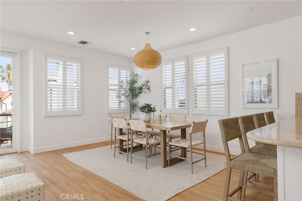 Set on a quiet street in the heart of the Gas Lamp section, this 3 bedroom, 3.5-bath townhome is a short distance to the beach, downtown Manhattan, and Grand View Elementary — one of the South Bay's most sought-after school districts. The top floor opens to a large deck with ample seating, wrap-around kitchen, living area with fully functioning/inspected fireplace, and adjacent dining area warmed by oak hardwood floors throughout the home. Each bedroom has an ensuite bath along with a powder room for guests situated between the middle and top floor. The primary suite features a soaking tub, walk-in shower, dual vanities, private water closet, and walk-in closet. A secondary bedroom next to the primary room. The bottom floor entry-level bedroom works equally well as a guest suite or home office. Dedicated laundry room on also on the lower level. Recent updates include fresh paint, new white shutters installed by owner, new window screens throughout, and an air-conditioned two-car garage with covered carport — ready for a workshop, studio, or flex space. A great opportunity to establish in one of the South Bay's most sought-after communities.