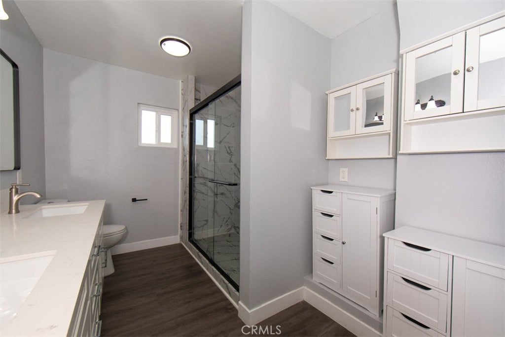 This lovely two-story home is located in a desirable area of Los Angeles. Just a short walk to stores and shopping centers. This property features 3 bedrooms and 3 baths. On the main level, in addition to the living room, kitchen, and breakfast nook, there is a family room, 2 bedrooms, a full bath, and a 1/2 bathroom. The second level includes a small tv room, master bedroom, and bathroom. Long driveway for 4 cars an enclosed patio and a recreational room.