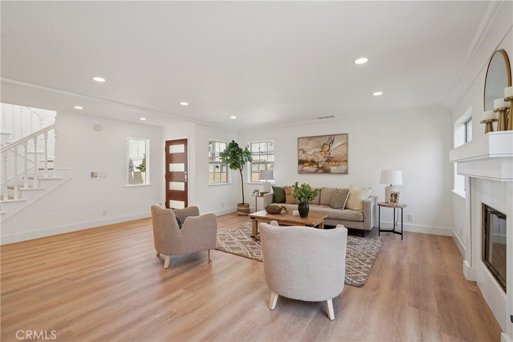 Some homes simply feel right the moment you step inside—and this one makes that impression immediately. Fully reimagined and thoughtfully designed, this detached townhome blends modern style with the kind of comfort and functionality that makes everyday living feel effortless. Wide-plank luxury vinyl floors stretch across the main level, recessed lighting keeps everything bright, and a cozy fireplace anchors the living space—perfect for relaxed evenings or lively gatherings with friends. Sliding doors open to a surprisingly spacious private backyard wrapped in lush greenery, creating an easy flow between indoor and outdoor living. Morning coffee, weekend BBQs, or a quiet moment in the fresh air all find their place here. The kitchen is equal parts beautiful and functional. Warm shaker cabinetry pairs with crisp white quartz counters, champagne hardware adds a touch of polish, and a 6-burner Viking range stands ready for everything from quick weeknight meals to full culinary ambitions. Upstairs, the primary suite feels like its own retreat, complete with a walk-in closet and a spa-inspired bath featuring dual vanities, a soaking tub, and elegant marble finishes that elevate everyday routines. Three additional light-filled bedrooms with vaulted ceilings plus a gorgeous reimagined full bathroom with champagne finishes offer plenty of flexibility for guests, offices, or creative spaces, while an upstairs bonus living area provides that extra breathing room every household appreciates. A private two-car garage adds convenience, while the location places you close to dining, shopping, parks, schools, and the best of the surrounding beach cities—with easy access to the 405 for wherever the day takes you. Homes that combine thoughtful design, generous space, and a backyard like this don’t come along often… so if it feels like the kind of opportunity that disappears quickly, you’re probably right.