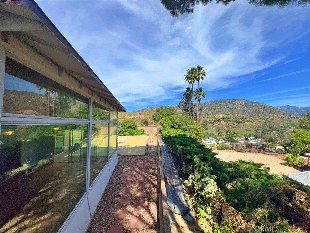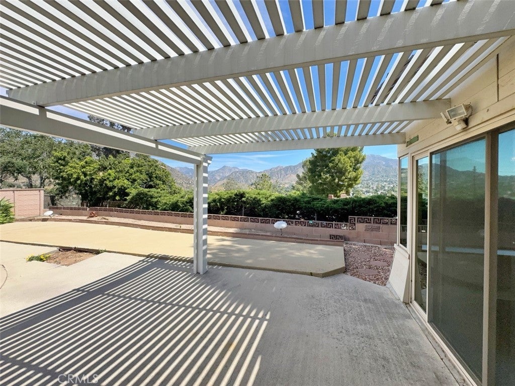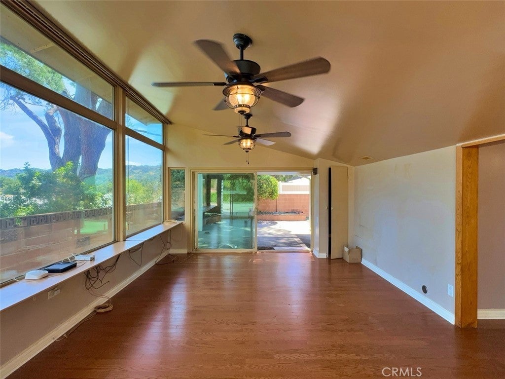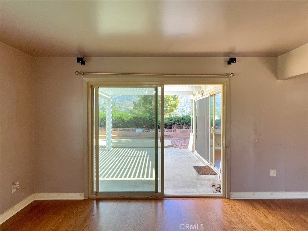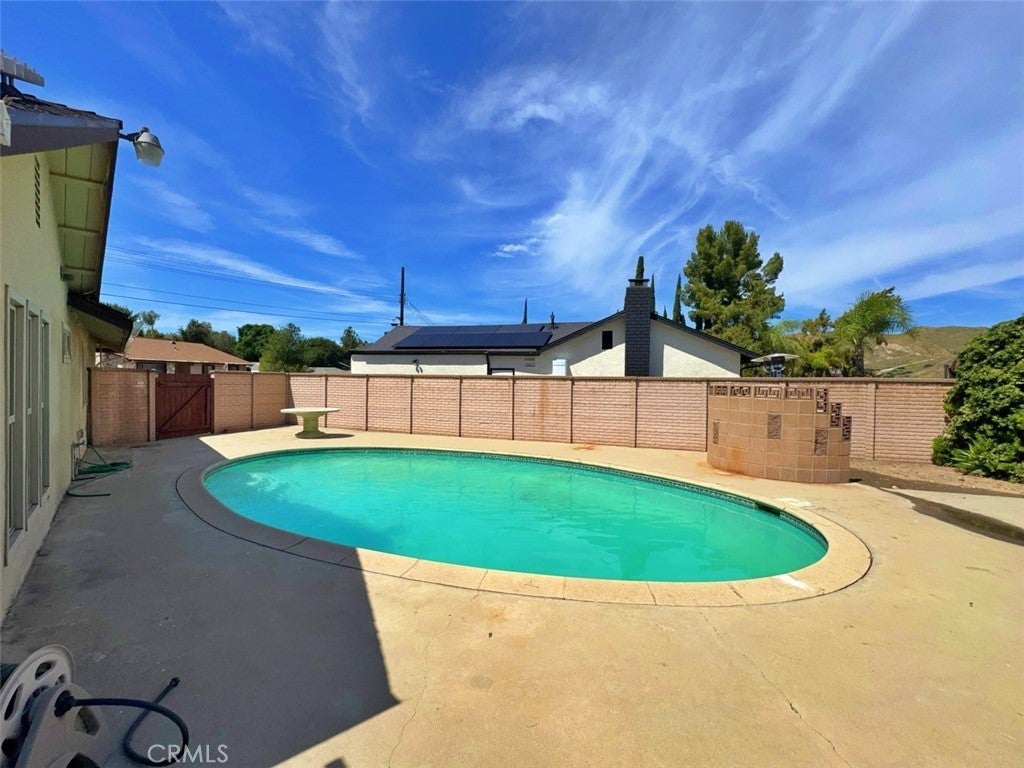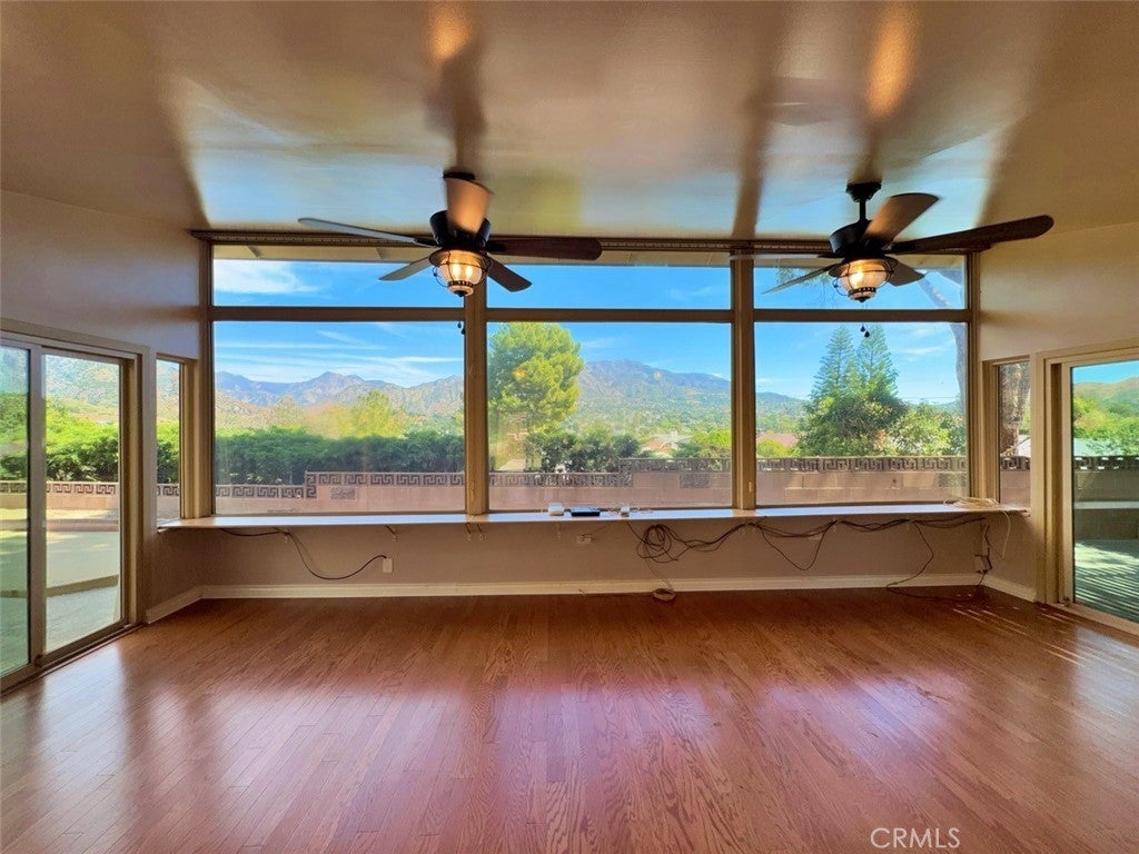Welcome to 8811 Riderwood Drive, a special home nestled in a quiet neighborhood with breathtaking mountain views that create a true sense of peace and retreat. Lovingly cared for over the years, this single-story 3-bedroom, 2-bathroom pool home offers warmth, character, and a setting that's hard to find. The true showpiece is the expansive sunroom, where walls of panoramic windows frame the Verdugo Mountains beneath a vaulted ceiling with dual ceiling fans. Filled with natural light and finished with hardwood floors, this room is perfect for enjoying the surrounding scenery year-round. Hardwood floors flow throughout the open living and dining areas, which connect to a well-appointed kitchen featuring oak cabinetry, dark granite countertops, a gas range, and recessed lighting. Large sliding glass doors open to a covered patio with a charming pergola, ideal for al fresco dining with mountain views as your backdrop. The generous primary suite features a striking natural stone fireplace, recessed lighting, and direct sliding-door access to the pool and backyard. The ensuite bathroom offers a beautifully tiled walk-in shower with marble-style tilework and a decorative mosaic accent band. Two additional bedrooms with hardwood floors and ample closet space share an updated hall bathroom with tile surround and glass-enclosed shower. Step outside to your own private oasis. A sparkling pool with a generous deck is framed by mature palm trees and mountain views, creating the perfect setting for entertaining or quiet relaxation. A side yard with stepping stones and decorative mid-century block walls adds architectural charm. Additional highlights include energy-saving solar panels, drought-tolerant landscaping with lush synthetic turf out front for zero-maintenance curb appeal, central A/C and heating, a 2-car attached garage with laundry, and no HOA. Whether you're relaxing with a morning coffee or gathering with friends and family, this home offers an inviting indoor-outdoor flow. With its serene surroundings, beautiful views, and timeless appeal, this is a rare opportunity to own a home that has been truly cherished and is ready for its next chapter.