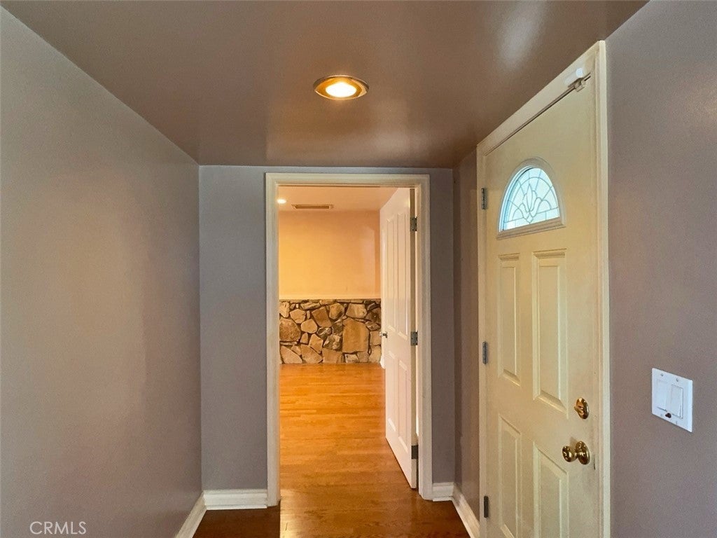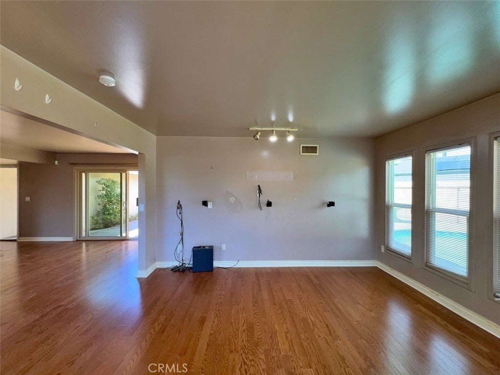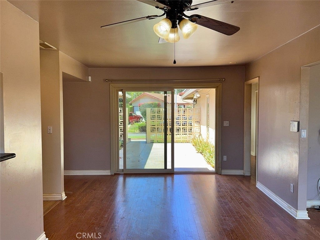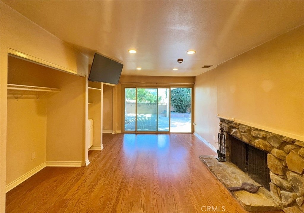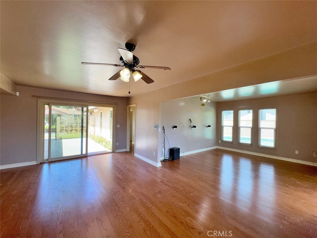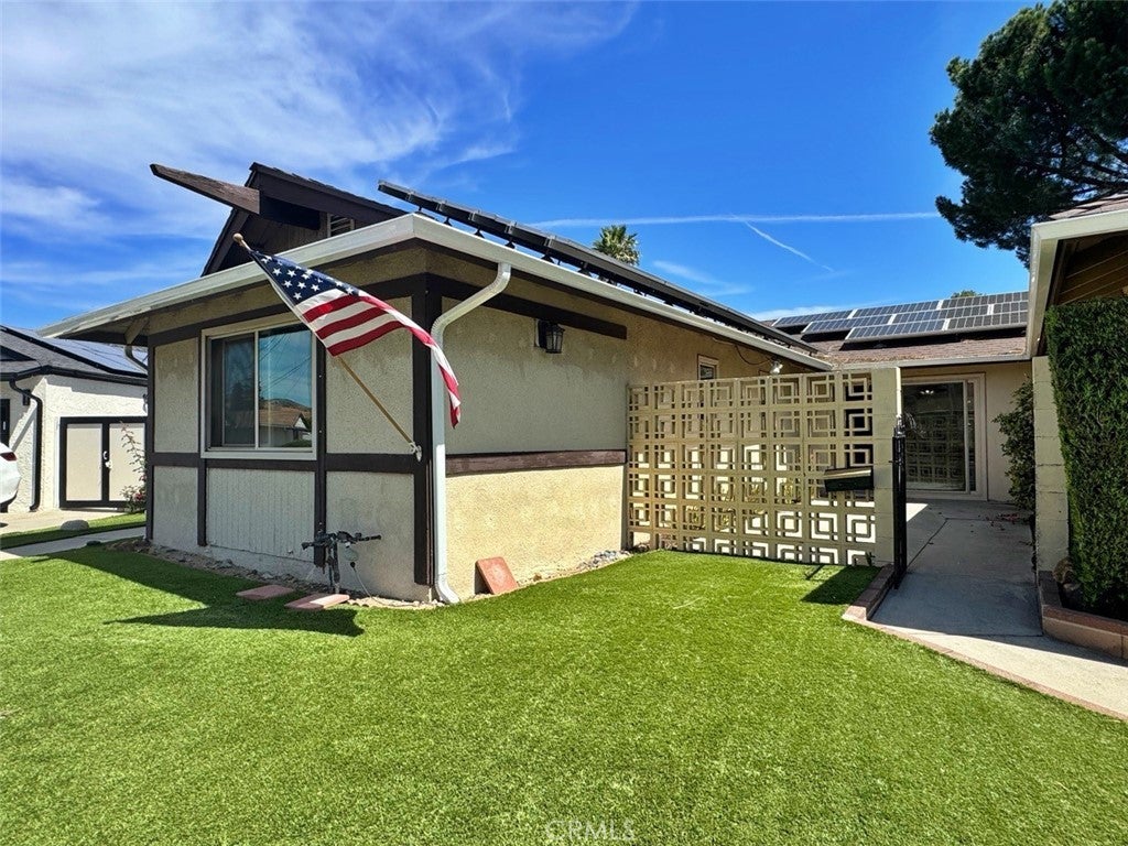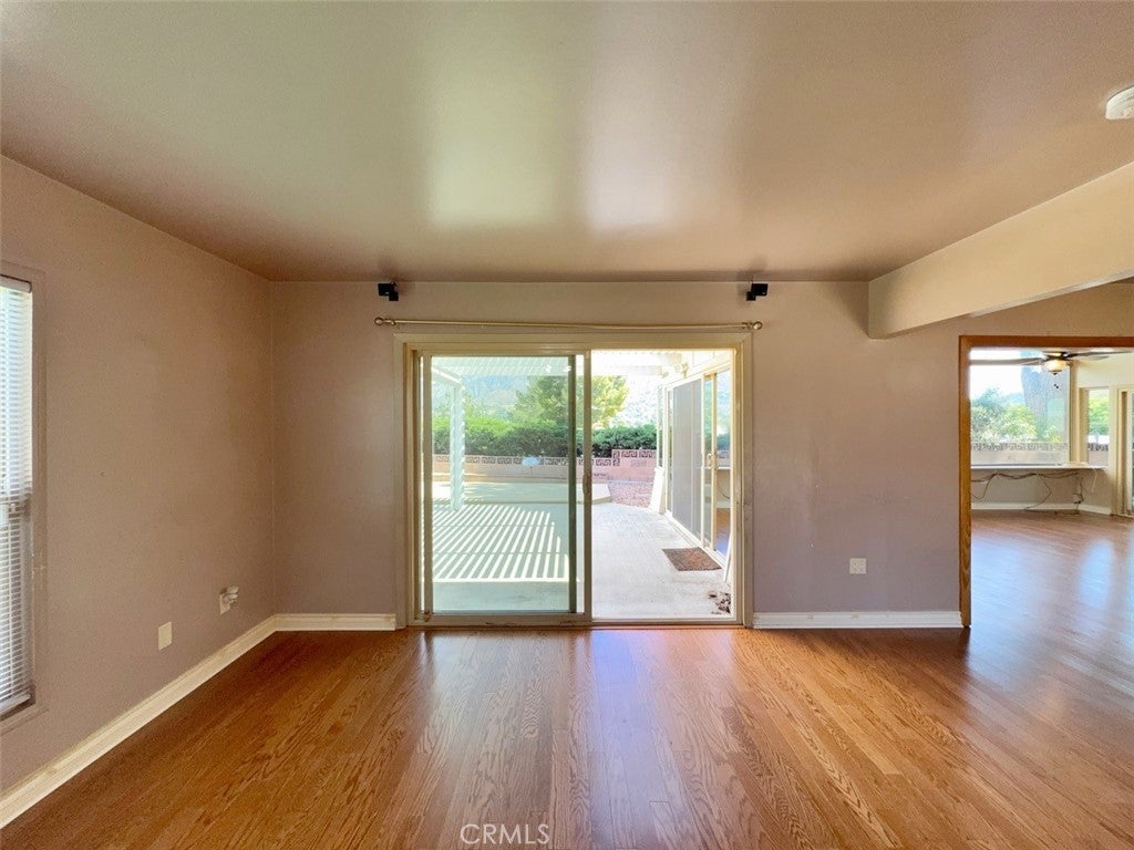 Welcome to 8811 Riderwood Drive, a special home nestled in a quiet neighborhood with breathtaking mountain views that create a true sense of peace and retreat. Lovingly cared for over the years, this single-story 3-bedroom, 2-bathroom pool home offers warmth, character, and a setting that's hard to find. The true showpiece is the expansive sunroom, where walls of panoramic windows frame the Verdugo Mountains beneath a vaulted ceiling with dual ceiling fans. Filled with natural light and finished with hardwood floors, this room is perfect for enjoying the surrounding scenery year-round. Hardwood floors flow throughout the open living and dining areas, which connect to a well-appointed kitchen featuring oak cabinetry, dark granite countertops, a gas range, and recessed lighting. Large sliding glass doors open to a covered patio with a charming pergola, ideal for al fresco dining with mountain views as your backdrop. The generous primary suite features a striking natural stone fireplace, recessed lighting, and direct sliding-door access to the pool and backyard. The ensuite bathroom offers a beautifully tiled walk-in shower with marble-style tilework and a decorative mosaic accent band. Two additional bedrooms with hardwood floors and ample closet space share an updated hall bathroom with tile surround and glass-enclosed shower. Step outside to your own private oasis. A sparkling pool with a generous deck is framed by mature palm trees and mountain views, creating the perfect setting for entertaining or quiet relaxation. A side yard with stepping stones and decorative mid-century block walls adds architectural charm. Additional highlights include energy-saving solar panels, drought-tolerant landscaping with lush synthetic turf out front for zero-maintenance curb appeal, central A/C and heating, a 2-car attached garage with laundry, and no HOA. Whether you're relaxing with a morning coffee or gathering with friends and family, this home offers an inviting indoor-outdoor flow. With its serene surroundings, beautiful views, and timeless appeal, this is a rare opportunity to own a home that has been truly cherished and is ready for its next chapter.