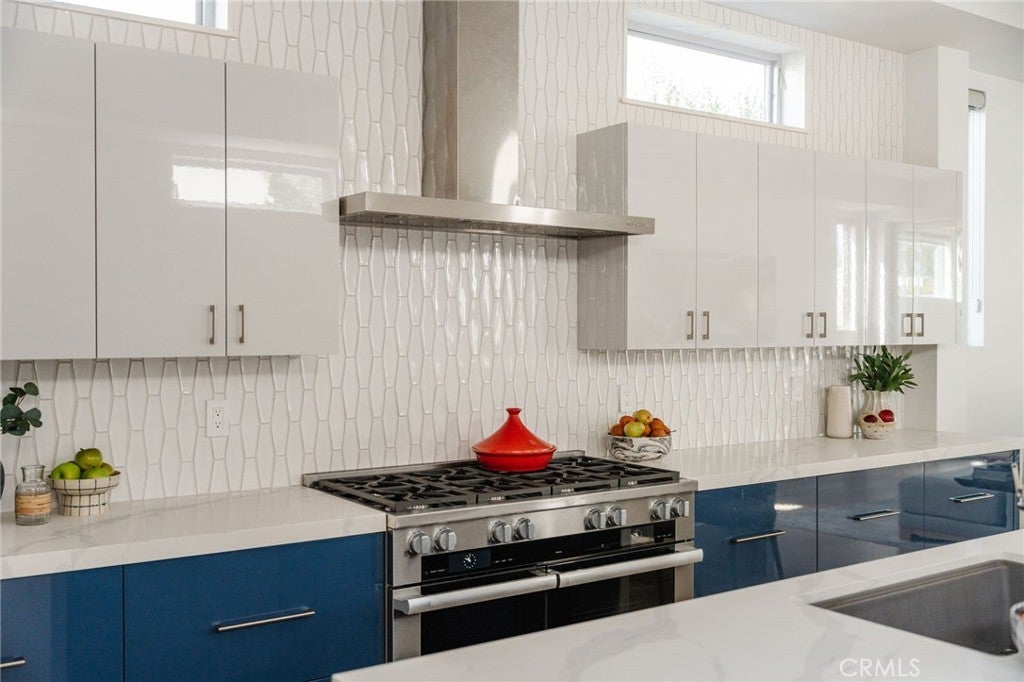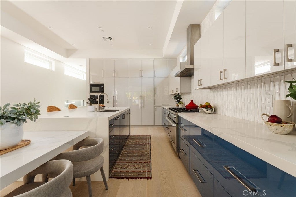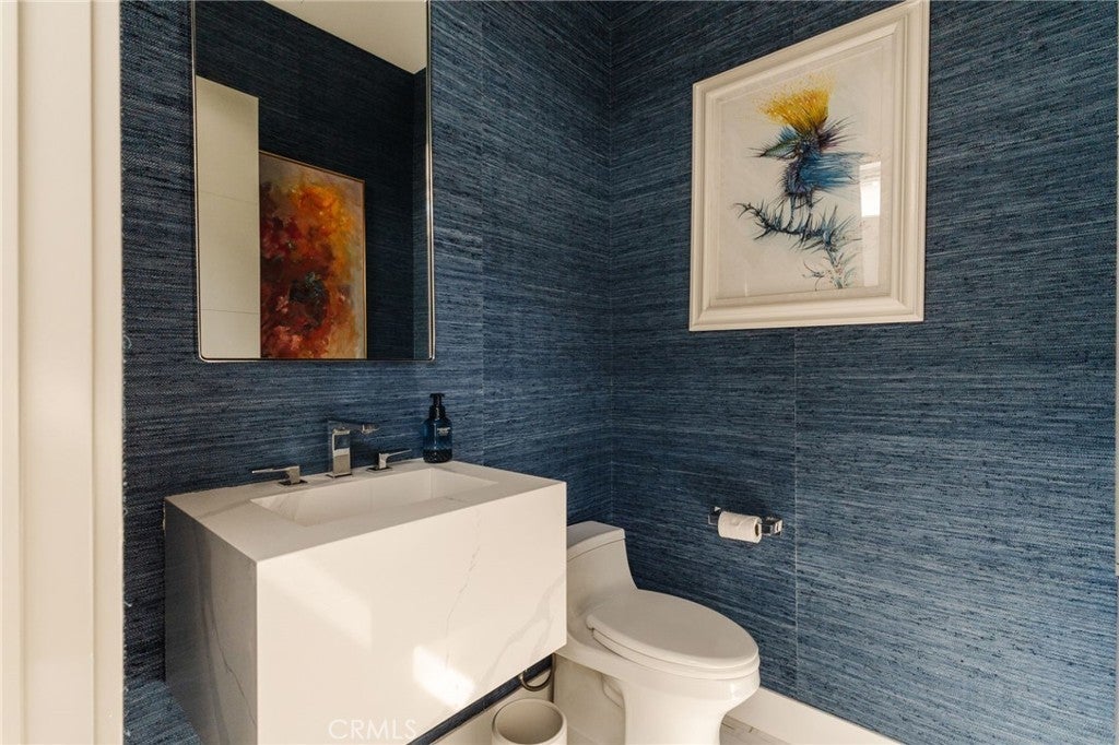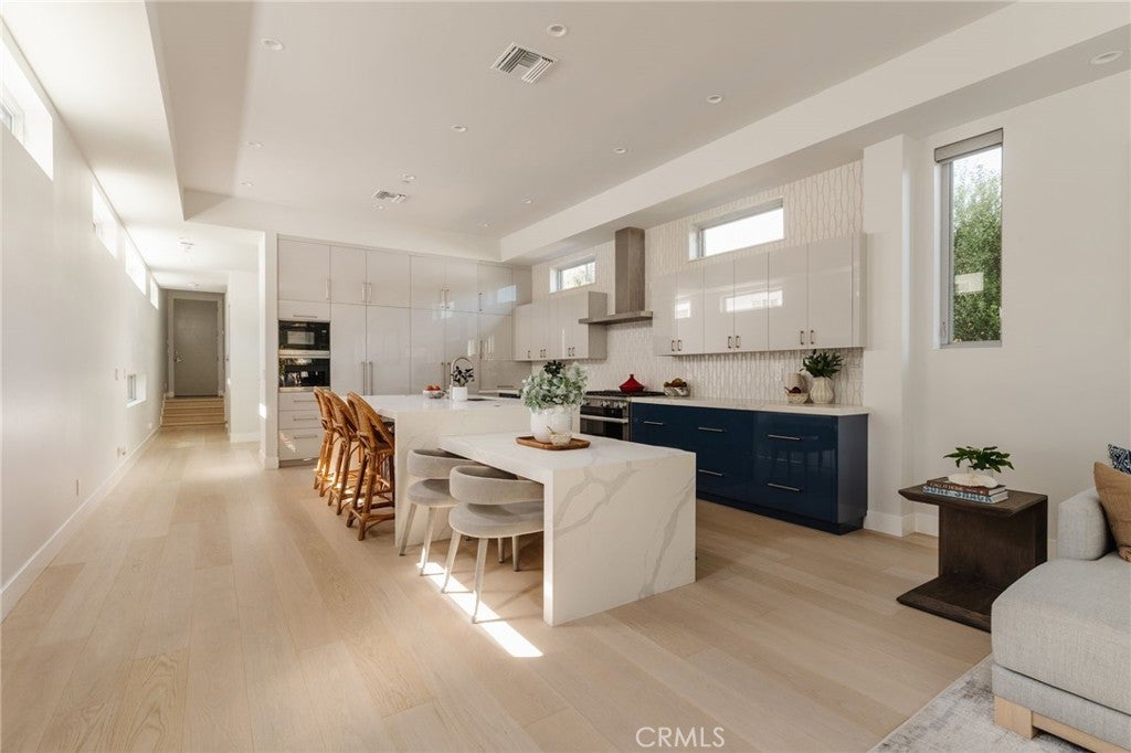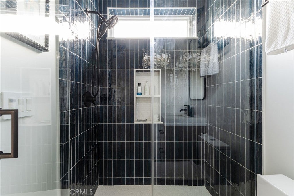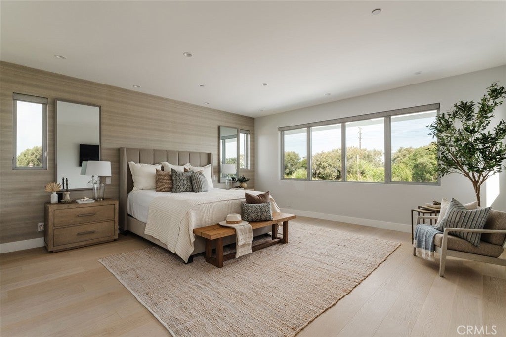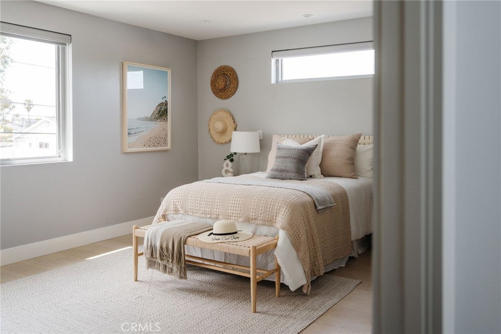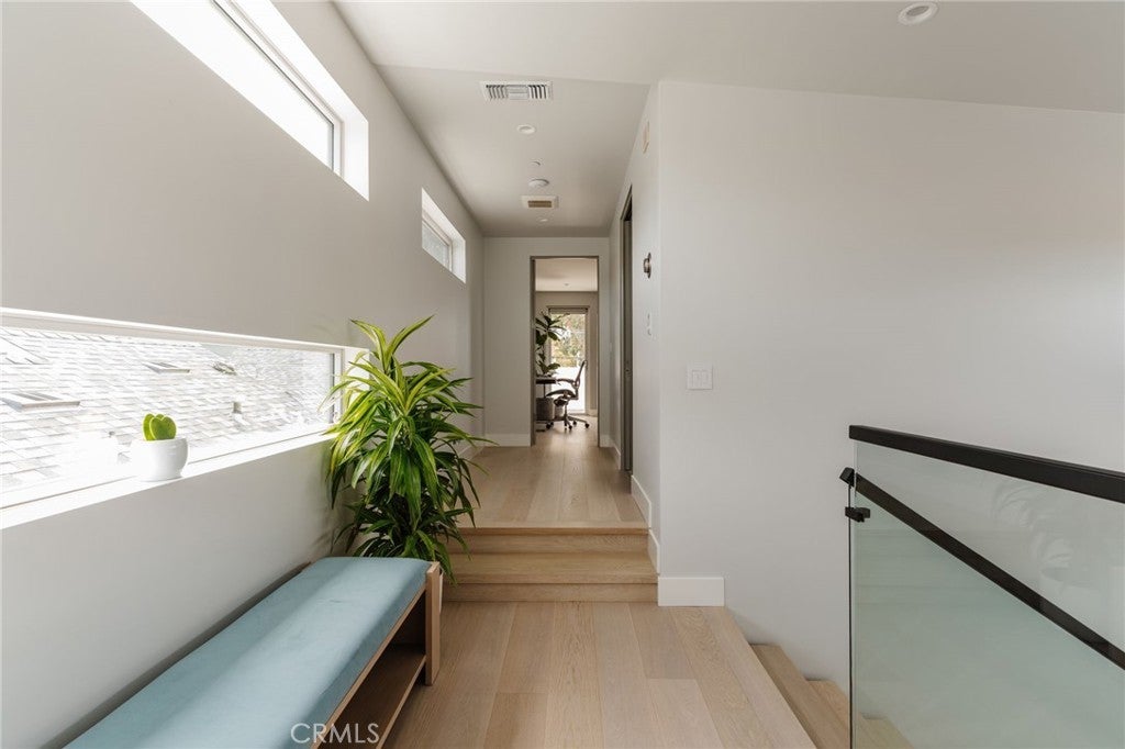 Hidden away, discover this newly built 2022 contemporary retreat defined by a calming aura, refined design, and elevated finishes. Serene, private, and thoughtfully composed, the home unfolds through a natural flow, paired with seamless living and abundant natural light. Designed as a true escape, privacy windows, lush landscaping, and the intentional positioning of living and sleeping spaces create a tranquil, immersive environment. Entering through landscaped gardens, you are welcomed into an enclosed sunroom designed for organic living (adding an additional 323 SF). Floor-to-ceiling windows, skylights, and ceiling-mounted heaters allow year-round use. Sliding LaCantina doors connect seamlessly to the living room, enhancing indoor-outdoor flow. Hardwood floors add warmth, while 12-foot ceilings, 7.5-foot custom doors, and an open-concept layout define the main level. Recessed lighting is integrated throughout, complemented by Pella double-pane windows and interior fire sprinklers. The kitchen is both functional and refined, centered around a tiered 10-foot quartz island with dual seating. Custom cabinetry by Coastal Cabinets with drawer-within-drawer inserts enhances usability, while premium appliances include a Miele 48” dual fuel range with steam oven and warming drawer, Bosch dishwasher, built-in Miele microwave, plumbed Miele coffee system, and Dacor panel refrigerator and freezer. Also on the main level, find a powder room and a flexible guest bedroom or office with ensuite bath featuring an oversized glass shower and heated floors. The two-car garage includes epoxy flooring, built-in and overhead storage, and a hybrid charging station, with additional parking on the rear drive enclosed by an electric gate. Upstairs, the home continues its emphasis on privacy and ease of living, connected by a floating staircase. The primary suite is positioned at the front of the home, with a hallway lined in custom cabinetry offering exceptional storage. The spa-inspired bath features a fully enclosed oversized shower, soaking tub, dual vanities, heated floors, and a custom walk-in closet. A secondary bedroom offers added privacy, a private balcony, and an ensuite bath with heated floors and a glass shower. A laundry area with built-in storage completes the level. Additional highlights include solar panels and a built-in security system with six exterior cameras. Private, peaceful, and thoughtfully designed, 664 Rosecrans presents refined coastal living.