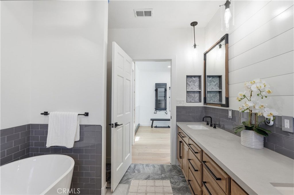 This turn-key, like-new, immaculately maintained custom home on a massive flat 7,500+ sq ft lot has been renovated and reimagined inside and out. At nearly 4,000 sq ft, every room is well-proportioned and thoughtfully designed, offering six bedrooms (or five plus a large home office) across two spacious levels. While featuring a modern open layout, its custom woodwork, natural finishes, and unique floor plan blend warmth with modernity—delivering the best of both design styles. Most notably, the home offers a rare gated front yard with a lush backdrop of mature ficus hedges extending along the perimeter of the huge, flat backyard, featuring multiple private outdoor spaces designed for both entertaining and everyday living. Elegant double doors from the front living room create a seamless extension to the lush, private front yard—ideal for play, gatherings, or quiet afternoons. The thoughtful interior layout flows from the dining space, with a custom-built-in buffet, to a stunning chef’s kitchen featuring premium appliances, abundant custom cabinetry, a quartz island, a walk-in pantry, and a striking glass-enclosed wine room. The layout provides sightlines to both front and rear yards—an ideal setup for family living and hosting. Expansive La Cantina doors open onto a covered patio designed for gatherings, including an outdoor dining space for al fresco family meals or hosting under the stars. The outdoor living areas include a louvered pergola, built-in BBQ and smoker, outdoor fireplace, spa, surround sound, built-in space heaters, and multiple seating areas, all overlooking a sunny south-facing backyard that's perfect for sports, play, or a future pool. Extensive upgrades include a near-full renovation featuring a remodeled kitchen and bathrooms, oak flooring, custom built-ins, updated electrical and plumbing, a 3-zone HVAC system, a tankless water heater, full-house water filtration, a Sonos sound system, custom closets, a luxurious mudroom, and an upgraded garage. Exterior improvements include new siding, fresh paint, dual-insulated windows and doors, a new roof and gutters, and professionally designed landscaping. Located near parks, award-winning Pennekamp, MBMS, and Mira Costa schools, and just minutes to the beach, dining, and shopping—this move-in-ready home offers privacy, thoughtful design, and effortless Manhattan Beach living.