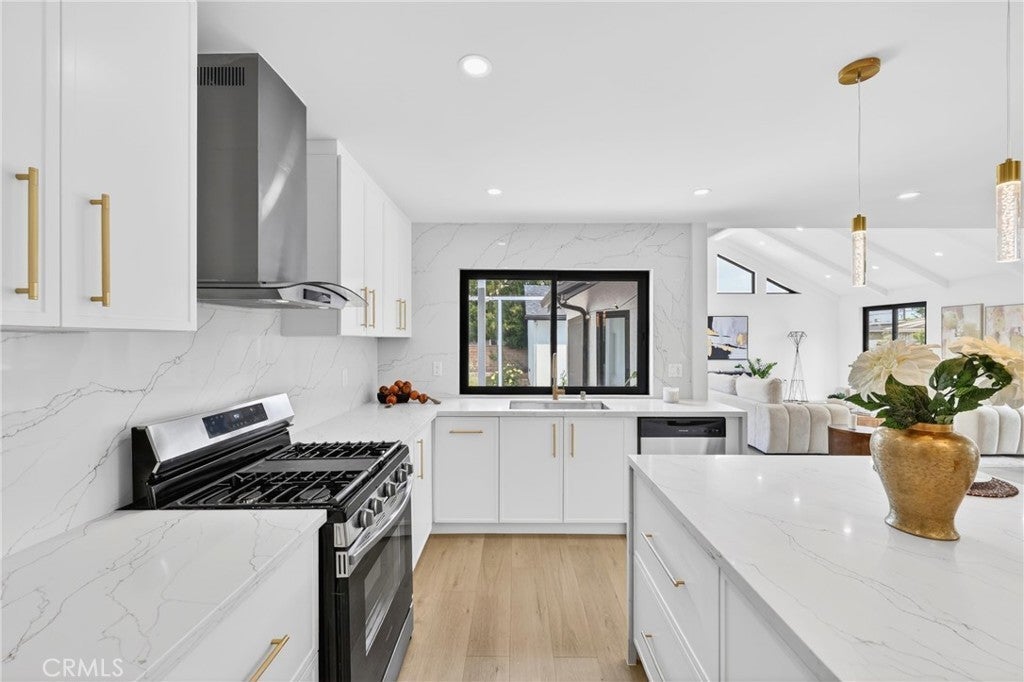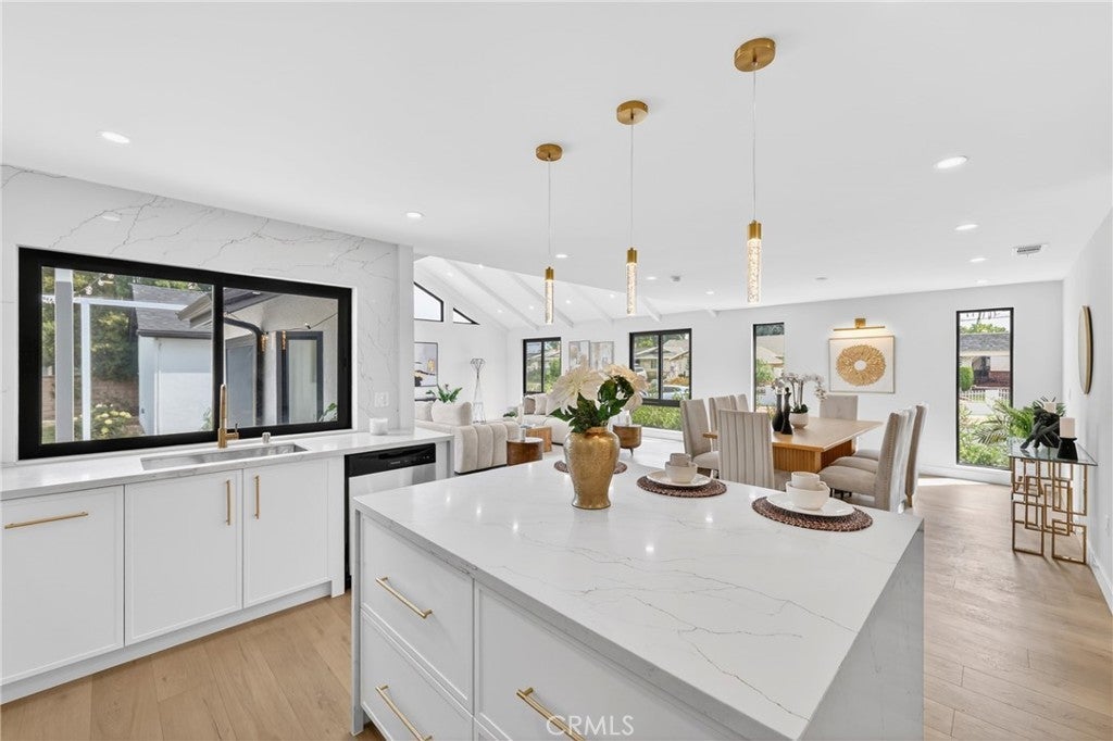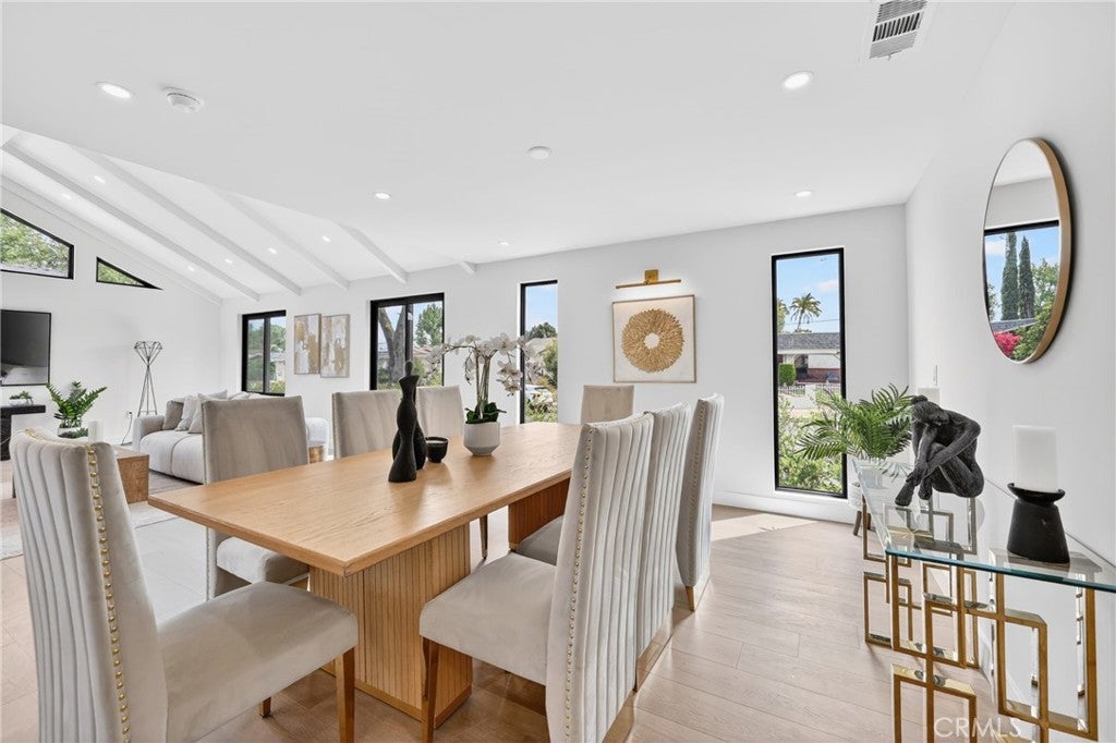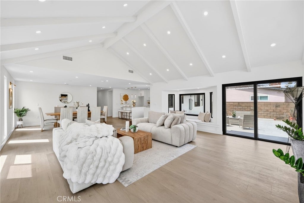 16231 Septo Street: four bedrooms, three bathrooms over 2000 SF living space and large 7300 SF lot in desirable Granada Hills neighborhood, open floor plan makes this charming residence a perfect blend of comfort for family. This home features two spacious Primary bedrooms, and a generous bright family room with vaulted beam ceilings. All new Inside laundry, New kitchen, new doors, new windows, three new bathrooms, New roof, new tankless water heater, new laminated flooring, new recessed lighting, central air and heat are just some of high points of this perfect, exceptional and entertaining home The two-car detached garage and large back yard offers great potential for an ADU which making this property very exceptional. The inviting living room is perfect for entertaining, large windows that allow natural light to flood the space from all corners of this room. Kitchen will offer new Quartz counter tops, all new appliances, along with plenty of new white European Slim Shaker Cabinets. The kitchen flows seamlessly into the dining room, ideal for casual meals or holiday gatherings and entertainments. All new Sliding doors lead to the serene backyard patio with all new ceramic tile, lush green yard and plenty of fruit trees which creating an inviting space for outdoor entertaining. Two primary Master Bedrooms make this property unique for comfort of in-laws or additional income if needed at any time. This Granada Hills gem is conveniently located near CSUN, schools, shopping destinations, freeways, and restaurants. See for yourself there is lot to say and to do here.