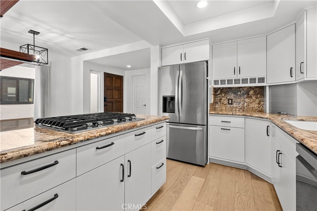 Golden Hills Living in the South Bay! 1738 Haynes Lane is a beautifully designed home featuring vaulted ceilings, stylish flooring throughout, and a bright open layout. The living room with cozy fireplace offers direct access to the private backyard—perfect for indoor/outdoor entertaining. The kitchen includes stone countertops, white cabinetry, stainless appliances, and a breakfast bar, with a dining area that flows naturally from the kitchen. Upstairs you'll find a spacious primary suite with an open balcony plus two additional bright bedrooms. Recent upgrades include new flooring throughout, exterior paint, an opened kitchen-to-living room, built-in office storage, finished garage flooring, and new washer, dryer, and refrigerator. Located on arguably one of the best streets in Golden Hills, known for its annual block parties and strong neighborhood feel, and walking distance to an award-winning school. Just minutes to the beach, shops, and restaurants the South Bay is known for.
