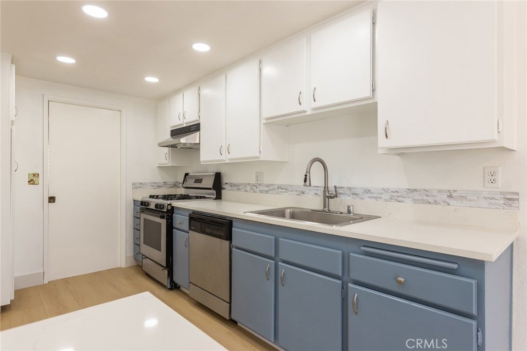 The Stonegate community complex in the highly desirable West Garden Grove neighborhood welcomes you to this updated town home with resort like amenities. Open and spacious floorplan with an abundant amount of natural lighting. A remodeled kitchen with new quartz countertops, sink, has recessed lighting and refaced cabinets. Opens up to the dining area and living room. Living room has a cozy fireplace and sliding door which leads to the private backyard and two car garage. Perfect to plant your own home garden and space for your pet. Home has central heat and AC, has been freshly painted and all bedrooms have plantation shutters. One bedroom is on the main level along with a half bath. New waterproof laminate flooring throughout. The HOA has upgraded the electrical panel, has a pool, tennis court and club house. Home is walking distance to grocery stores and the popular Eastgate Park which hosts concerts, outdoor movies at the park and many more fun activities. Short drive to Costco and freeway and plenty of restaurants to choose from. Great community to be associated with.